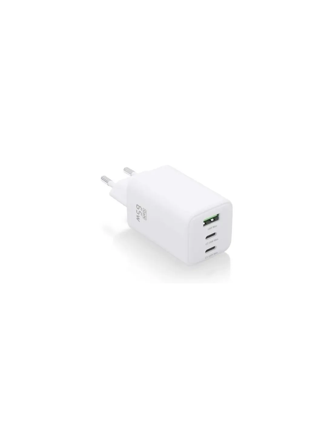 AISENS® ? Cargador GaN USB-C 65W para cargar portátiles, móviles, cámaras y tablets etc.Este cargador cuenta con la tecnología GaN que ofrece una serie de ventajas, incluyendo una mayor eficiencia energética, menor generación de calor, mayor capacidad de corriente y menor tamaño y peso en comparación con los cargadores tradicionales de silicio. Estas ventajas hacen que los cargadores GaN sean una opción cada vez más popular para usuarios que buscan una carga más rápida, eficiente y sostenible.