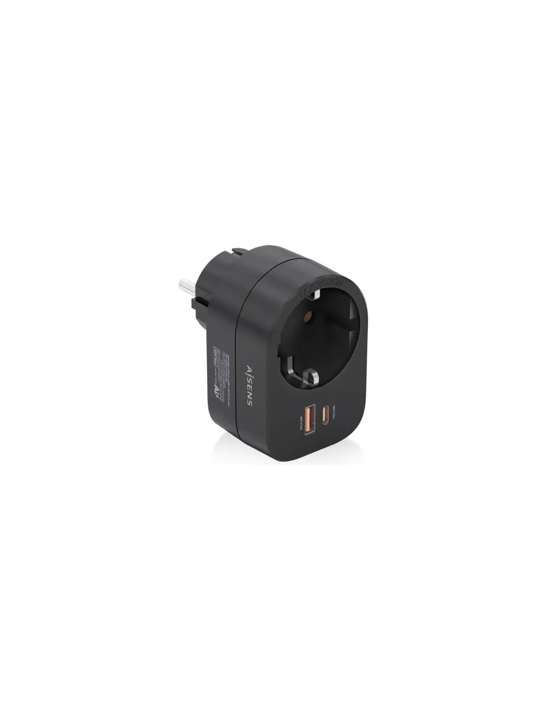 AISENS - Regleta De Pared Multifuncion Con 1 Toma + 1xUSB-C 20W PD3.0, 1xUSB-A 20W QC3.0, NegroRegleta de pared multifunción con 1 toma Schuko, 1 puerto USB-C 20W PD3.0 y 1 puerto USB-A 20W QC3.0