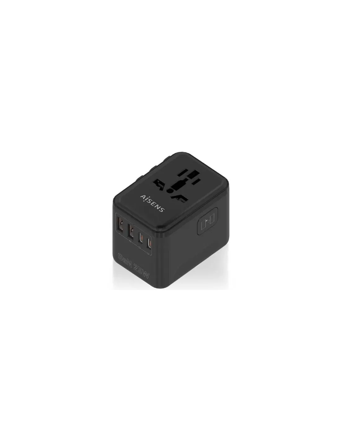 Cargador de Pared Universal GaN para Viaje Aisens ASPS-2A2C08-BK/ Toma de Corriente Universal/ 2xUSB Tipo-C/ 2xUSB/ 25W