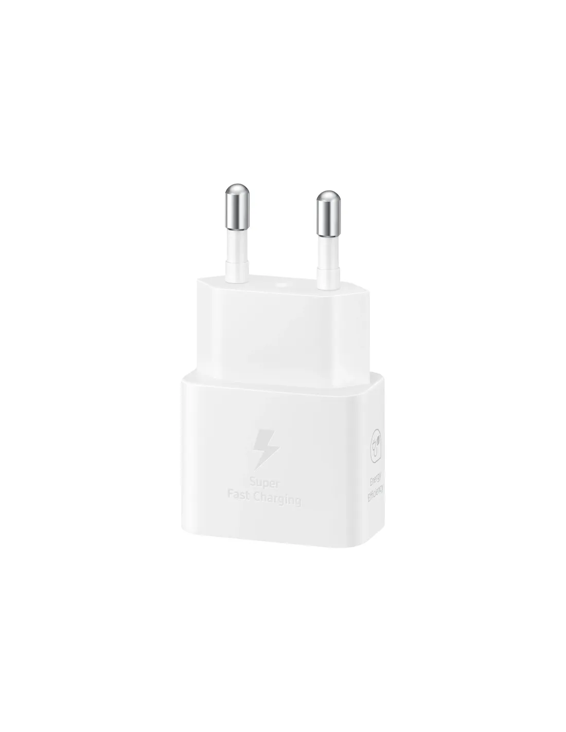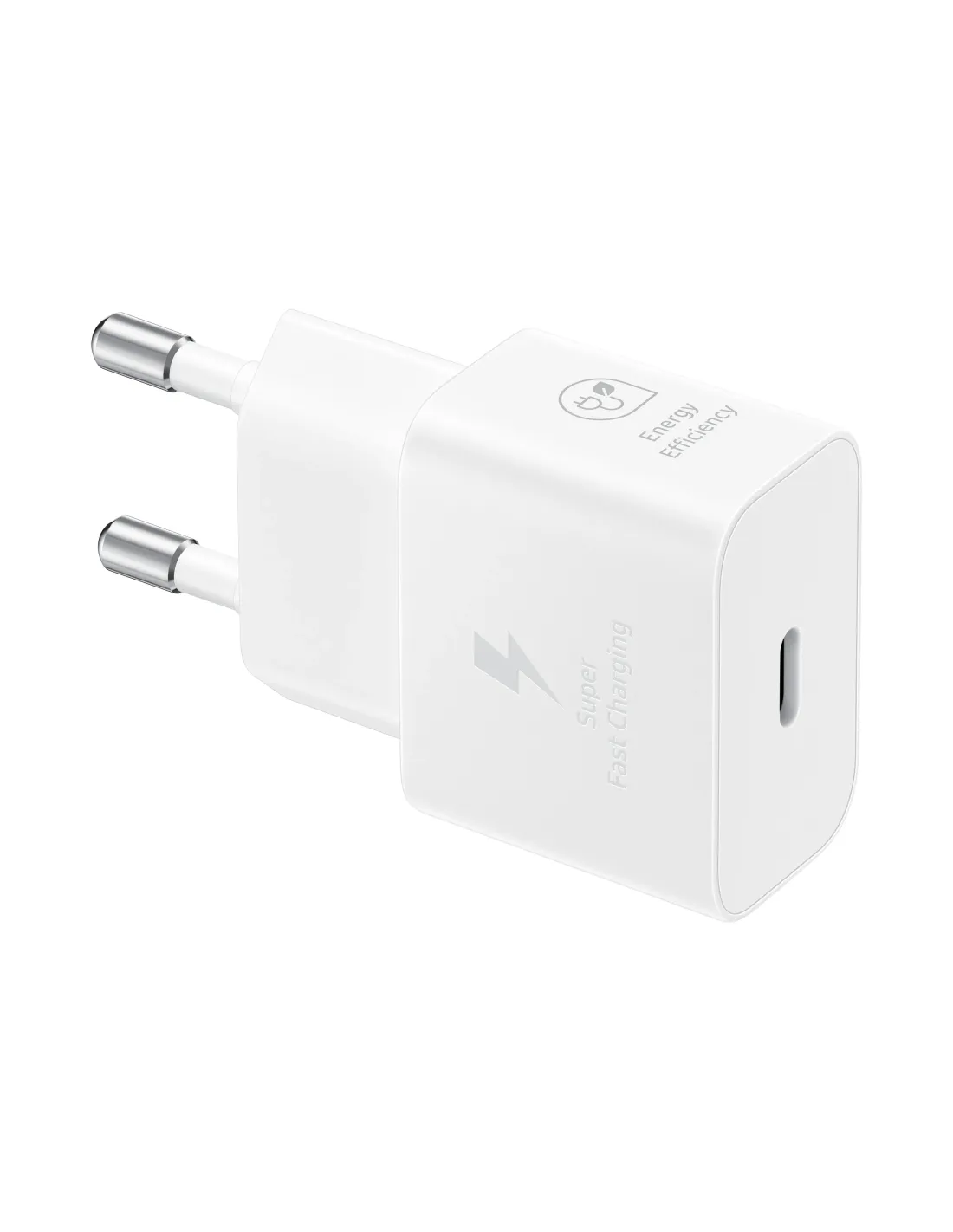 Potente y refinadoSube de nivel con el nuevo adaptador de corriente válido para Carga Súper Rápida de hasta 25W y para dispositivos compatibles con cables USB tipo C.Compacto pero potenteCada vez son más pequeños. El adaptador de corriente está disponible en blanco o negro y su diseño es más compacto que el de su predecesor gracias a la tecnología GaN, que lo hace también más fácil de transportar.Ahorra en esperaNo hay por qué ir siempre a todo gas. El adaptador de corriente reduce el consumo en espera de 20 mW a 5 mW para conseguir un ahorro de hasta el 75%. Además, está fabricado con una mezcla de materiales respetuosos con el planeta.Tan rápido como seguroNo hay nada más importante que la seguridad. Protégete de subidas de tensión, cortocircuitos, fugas y otros peligros.Compatible con USB tipo CUtilízalo con todos tus dispositivos compatibles con USB tipo C y con toda tu familia Galaxy para aprovechar al máximo la carga de 25W.