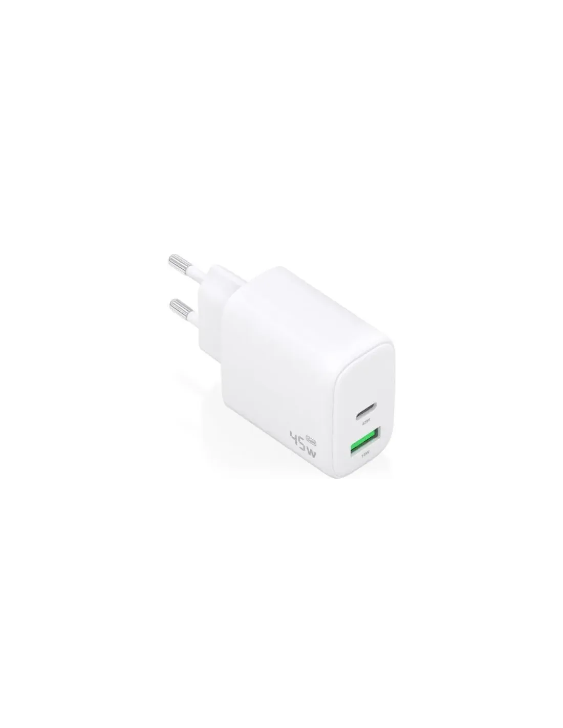 > Cargador GaN USB-C 45W para cargar portátiles, móviles, cámaras y tablets etc. Diseño muy elegante, moderno y práctico.> Este cargador cuenta con la tecnología GaN que ofrece una serie de ventajas, incluyendo una mayor eficiencia energética, menor generación de calor, mayor capacidad de corriente y menor tamaño y peso en comparación con los cargadores tradicionales de silicio. Estas ventajas hacen que los cargadores GaN sean una opción cada vez más popular para usuarios que buscan una carga más rápida, eficiente y sostenible.> Tecnología AI (chip inteligente) incorporado que detecta el tipo de protocolo del dispositivo conectado para maximizar tanto la compatibilidad como la velocidad de carga.> Cargue su dispositivo USB-C o USB-A de forma fácil y sencilla.> Múltiples protecciones contra sobrecarga, cortocircuito, lo que garantiza la máxima seguridad para su dispositivo.> Este cargador puede cargar simultáneamente 2 dispositivos USB-A y USB-C a máxima velocidad.