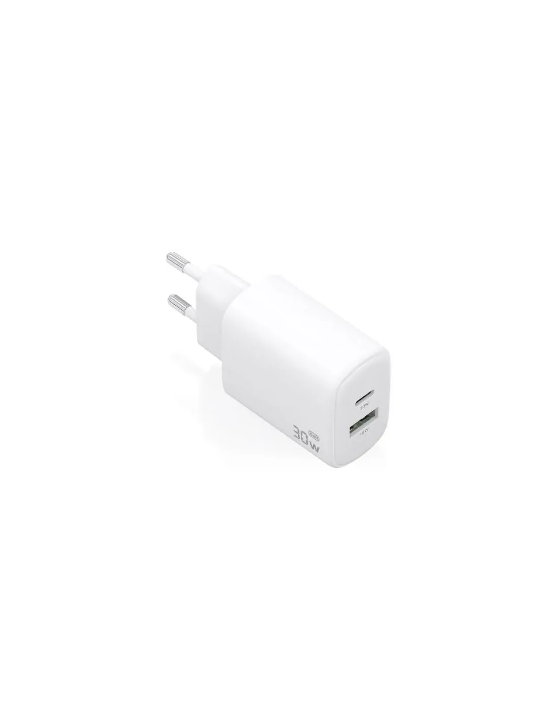 Cargador GaN 30W, 1xUSB-C PD3.0 QC4.0, 1xUSB-A QC3.0, Blanco