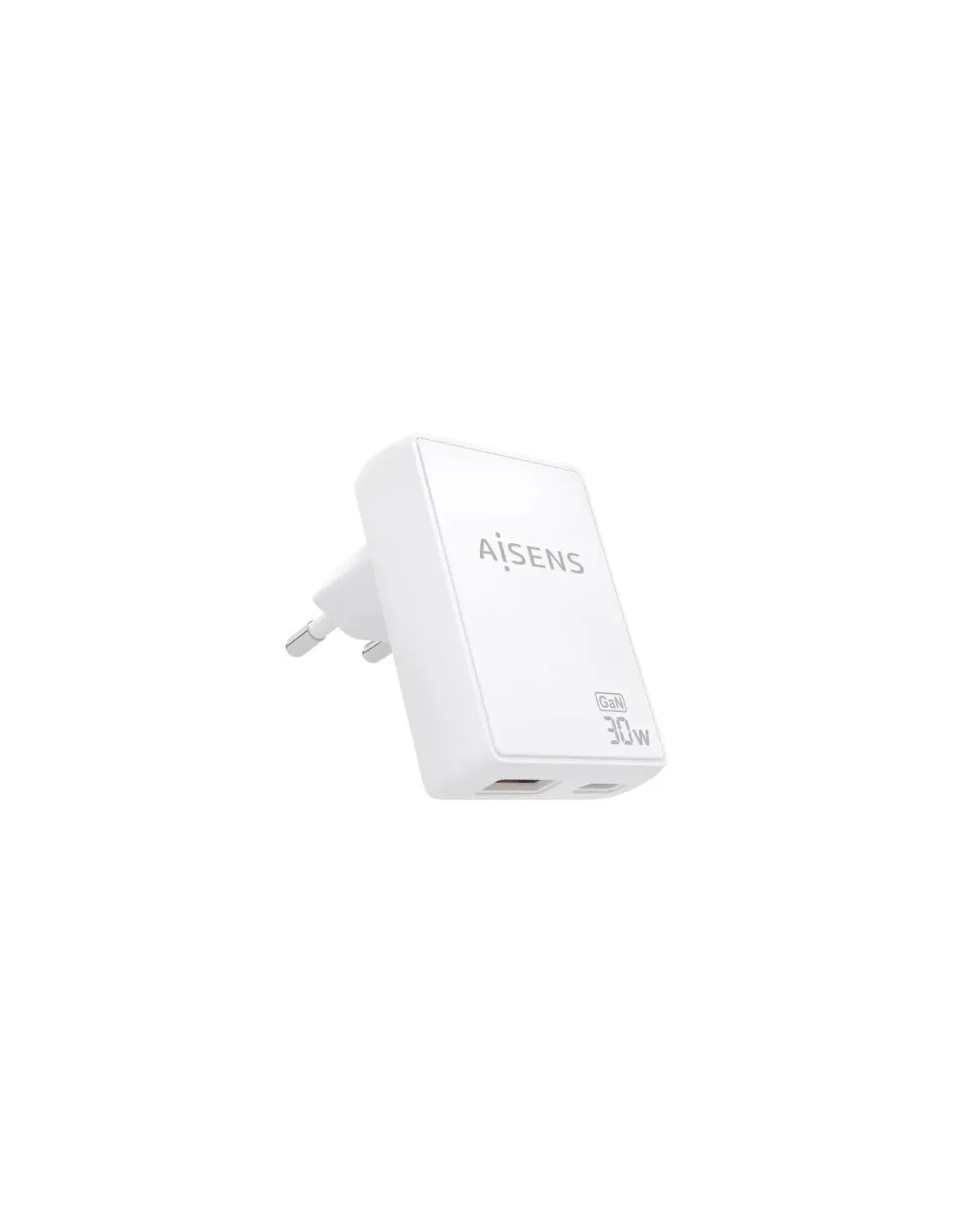 Cargador de Pared GaN Aisens ASCH-30W2P074-W/ 1xUSB Tipo-C/ 1xUSB/ 30W/ Blanco