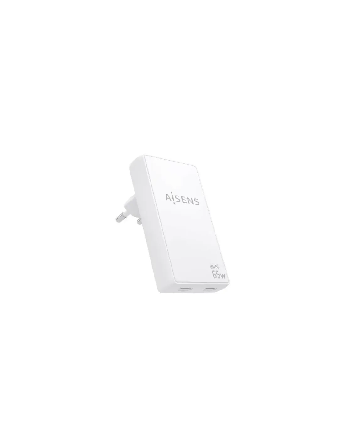 Cargador de Pared GaN Aisens ASCH-65W2P077-W/ 2xUSB Tipo-C/ 65W/ Blanco