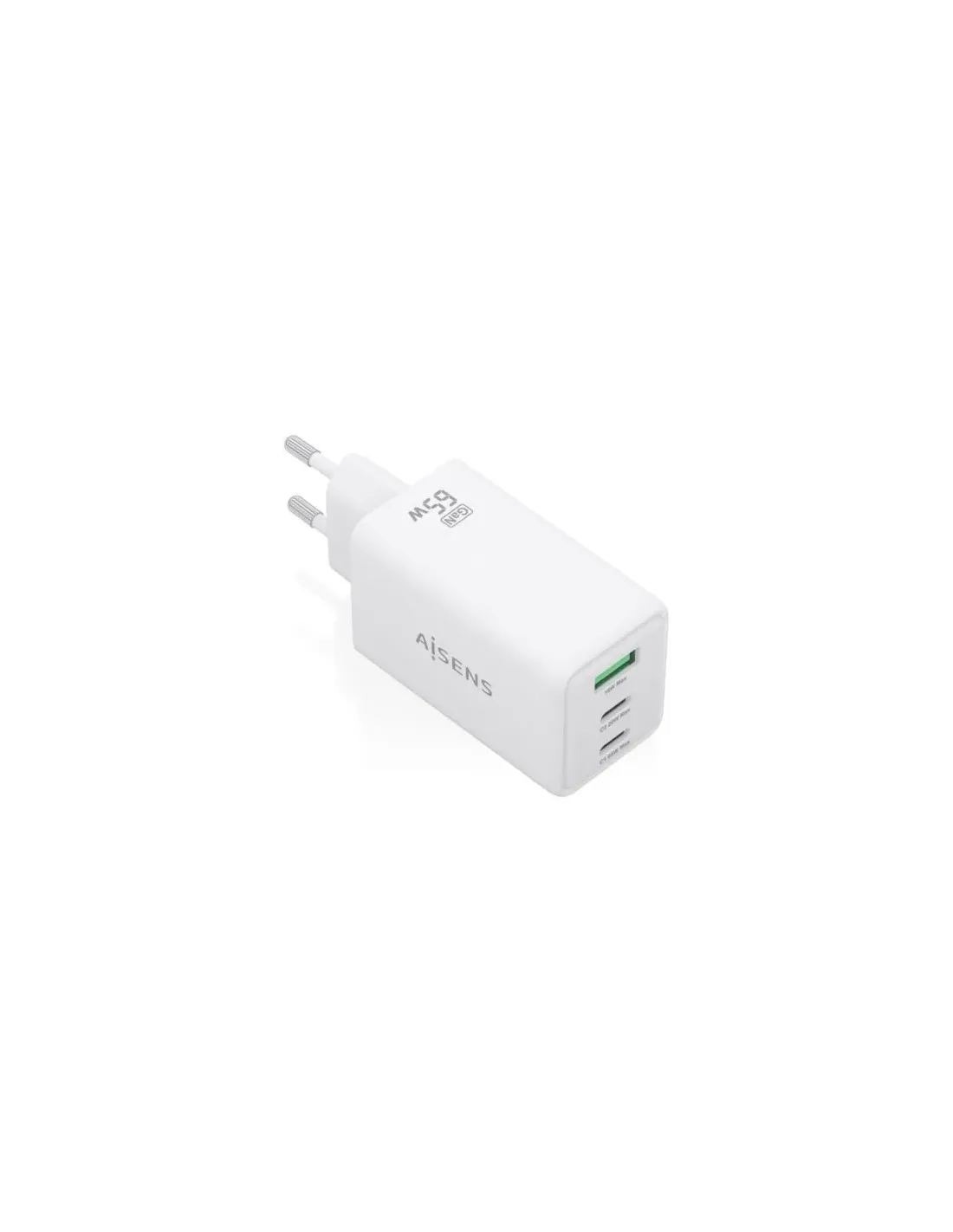 Cargador de Pared GaN Aisens ASCH-65W3P072-W/ 2xUSB Tipo-C/ 1xUSB/ 65W/ Blanco