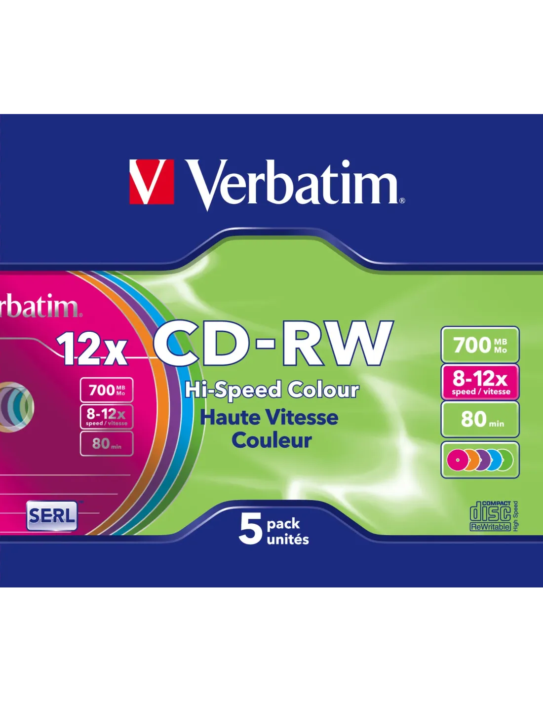 Verbatim CD-RW Colour 12x, 12x, CD-RW, 120 mm, 700 MB, Caja de cd, 5 pieza(s)