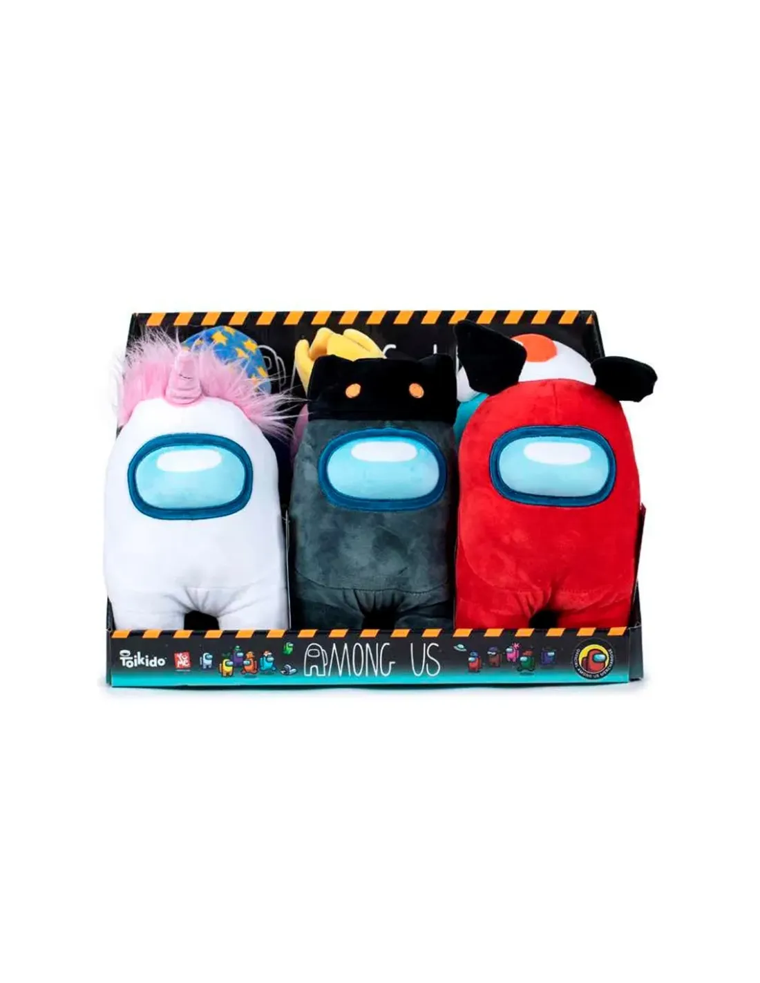 Among Us es el videojuego que todos conocen, si no has jugado a estejuego seguro que has oído hablar de él, todos los streamers han jugado ymuchos famosos del deporte también. Un juego sencillo que engancha.Estos peluches de Among US, tienen un tamaño de 30cm de altura y vienepresentado en un display de 6 figuras diferentes.
