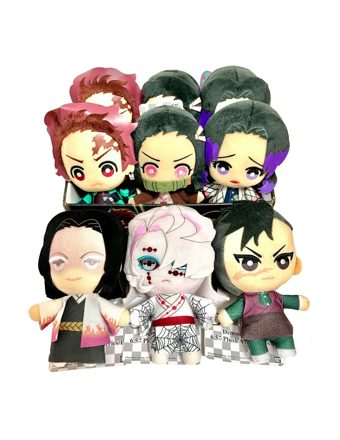 BANPRESTO lanza una edición exclusiva de peluches de la serie deanimación Guardianes de la Noche, conocida por su nombre original comoKimetsu No Yaiba (Demon Slayer).Este producto viene acompañado con un pequeño display en el que seincluyen las 9 unidades, peluches, de los diferentes personajesrepresentados. 2 unidades de Tanjiro, Nezuko y Shinobu, más 1 unidad deUbuyashiki, Genya y Rui, forman las 9 unidades que componen este pack.Un producto perfecto para esta época en la que la serie esta disfrutando desu popularidad mundial con el lanzamiento de una película en casi todos loscines del mundo, además del anuncio de su proxima segunda temporada,presente en plataformas como Netflix.Por la compra de este pack de 9 unidades, se asegura el pequeño display oexpositor (visualizado en las imagenes) junto con las 9 unidades.