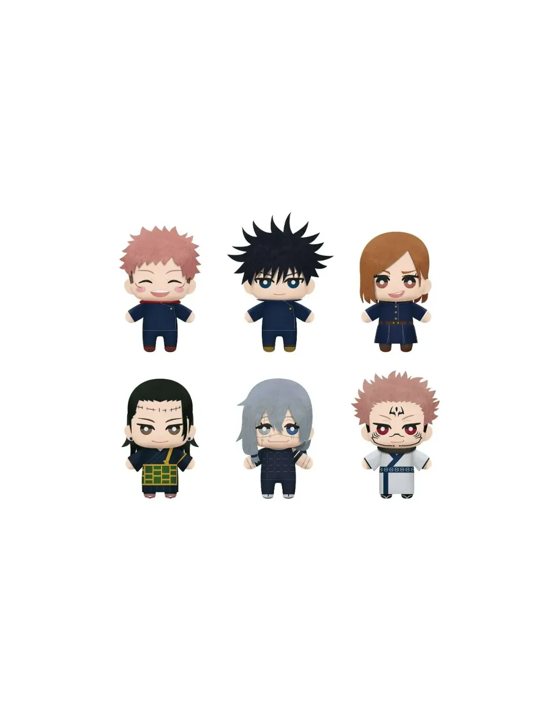 Banpresto presenta dentro de su línea de productos el peluche de SURTIDO18 PELUCHES 15 CM JUJUTSU KAISEN TOMONUI. El surtido está compuestopor 18 peluches de 6 modelos distintos: 4x Yuji, 4x Megumi, 4x Sukuna, 2xNobara, 2x Geto, 2x Mahito. Por la compra de 1 unidad, se obtienealeatoriamente 1 de los peluches mostrados en la imagen. Si se compran 18unidades, se entrega el surtido completo mencionado en la descripcion.