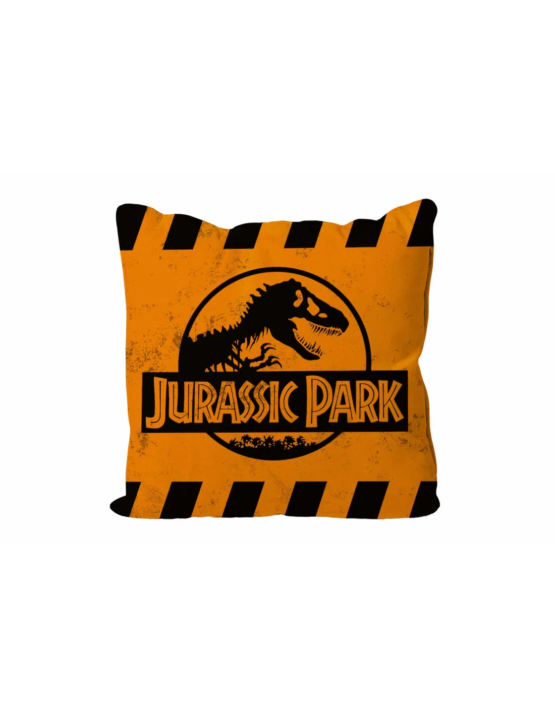Cojin cuadrado caution logo naranja jurassic park envasado vacio