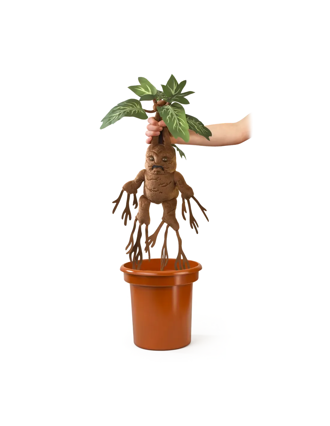 ```- GENERALProducto: Mandrágora electrónica interactivaColección: Harry PotterTipo de producto: Figura de felpa con sonido- DIMENSIONESTamaño: 40 cm- CARACTERÍSTICAS DESTACADASFunción interactiva: Emite chillidos y vibraciones al sacarla de la macetaReacción: Se calma al volver a colocarla en la macetaMaterial: FelpaIncluye: Maceta decorativaPresentación: Viene en envoltorio de cartón con logotipo de Harry Potter- FUNCIONALIDADEfectos de sonido: SíMovimiento: Vibración al activarseActivación: Al tirar de la mandrágora hacia arriba```