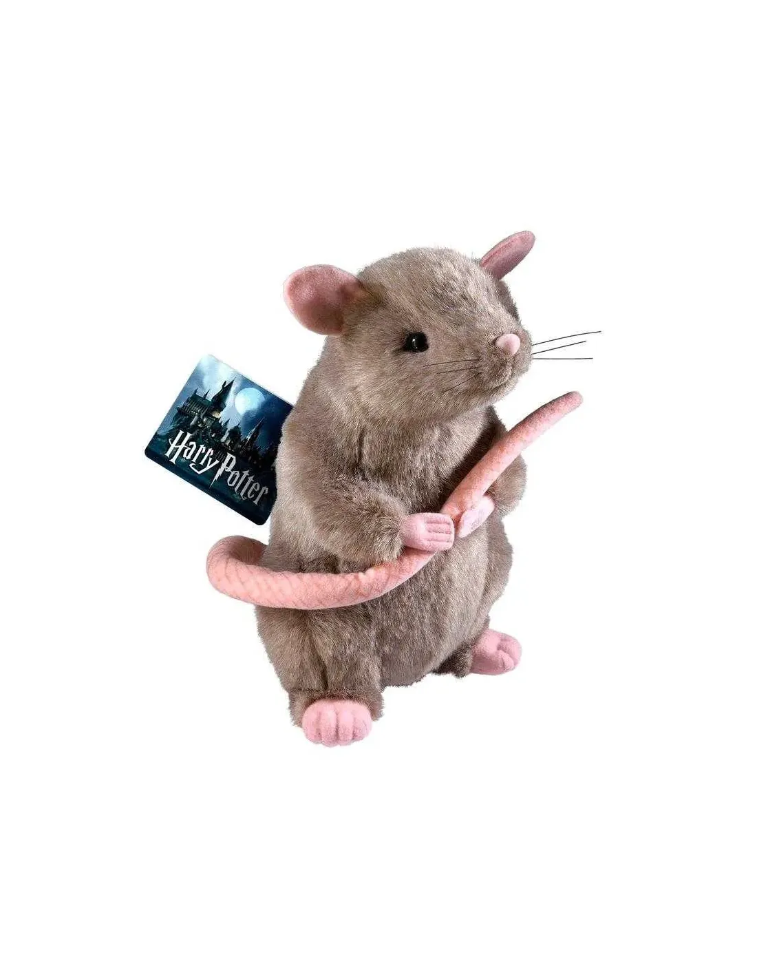 ```- GENERALProducto: Peluche de ScabbersColección: Harry PotterPersonaje: Scabbers, la rata mascota de Ron Weasley- DIMENSIONESAltura: 28 cm- MATERIALESMaterial: Peluche suave- CARACTERÍSTICAS DESTACADASDiseño adorable inspirado en ScabbersIncluye velcro en las patas delanteras para sujetarse a la colaCola flexible y movibleIdeal para coleccionistas y fanáticos de Harry Potter```