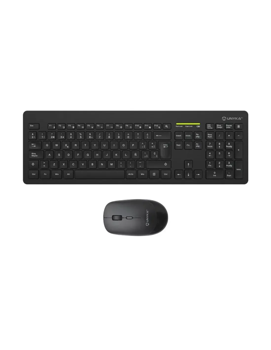-TIPO DE DESPLAZAMIENTORueda-USO RECOMENDADOOficina-TIPO DE BOTONESBotones presionados-TECNOLOGÍA DE DETECCIÓN DE MOVIMIENTOSÓptico-RESOLUCIÓN DE MOVIMIENTO2400 DPI-CANTIDAD DE BOTONES4-DIRECCIONES DE DESPLAZAMIENTOVertical-RUEDA DE DESPLAZAMIENTOSí-RATÓN INCLUIDOSí-DIMENSIONES DEL RATÓN (ANCHO X PROFUNDIDAD X ALTURA)63 x 111 x 32 mm-PESO DEL RATÓN85 g-RATÓN TIPO DE BATERÍAAAA-NÚMERO DE PILAS (RATÓN)1-TIPO DE TECLADOQWERTY-PERFIL DE TECLADOPerfil bajo-FORMATO DEL TECLADOCompleto (100 %)-TECLADO, CANTIDAD DE TECLAS108-TECLADO NUMÉRICOSí-DISEÑO DE TECLADOQWERTY-IDIOMA DEL TECLADOEspañol-DESCANSA MUÑECASNo-TECLAS DE WINDOWSSí-DISPOSITIVO APUNTADORNo-INTERFAZ DEL DISPOSITIVORF inalámbrico-FRECUENCIA DE BANDA2.4 GHz-INTERFAZ DE RECEPTOR INALÁMBRICOUSB tipo A-ALCANCE INALÁMBRICO8 m-RETROILUMINACIÓNNo-INDICADORES LEDSí-RECEPTOR INCLUIDOSí-CONCENTRADOR USBNo-TECNOLOGÍA DE BATERÍAAlcalino-ALIMENTACIÓNBatería-NÚMERO DE PILAS (TECLADO)2-TECLADO TIPO DE BATERÍAAA-TECNOLOGÍA DE CONECTIVIDADInalámbrica RF-SISTEMA OPERATIVO WINDOWS SOPORTADOWindows 10Windows 7Windows 8Windows Vista-SISTEMA OPERATIVO LINUX SOPORTADOSí-SISTEMA OPERATIVO MAC SOPORTADOmacOS-SISTEMAS OPERATIVOS MÓVILES SOPORTADOSAndroid-COLOR DEL PRODUCTONegro-COLORACIÓN DE SUPERFICIEMonocromo-MATERIALABS sintéticos-FACTOR DE FORMAAmbidiestro-NÚMERO DE PRODUCTOS INCLUIDOS2 piezas-CÓDIGO DE PRODUCTONo indicado-MANUAL DE USUARIOSí-PILAS INCLUIDASNo-DIMENSIONES DE TECLADO (ANCHO X PROFUNDIDAD X ALTURA)438 x 143 x 18 mm-PESO DEL TECLADO661 g-ANCHO DEL PAQUETE365 mm-PROFUNDIDAD DEL PAQUETE135 mm-ALTURA DEL PAQUETE36 mm-PESO DEL PAQUETE869 g-BENEFICIOSConjunto completo de teclado y ratón inalámbrico ideal para uso en oficinaCompatibilidad multiplataforma con Windows, macOS, Linux y AndroidDiseño cómodo y ergonómico con factor de forma ambidiestroTeclado de perfil bajo y formato completo con teclado numéricoRatón de alta precisión con 2400 DPIConexión inalámbrica estable y de largo alcanceIncluye receptor USB tipo A para fácil instalación