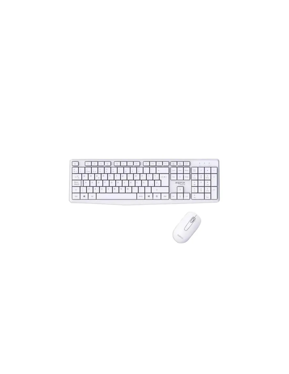 Marca Approx Modelo APPMX420W Teclado - Frecuencia: 2,4 GHz - Diseño ligero y compacto - Teclas con tratamiento láser anti desgaste - de larga duración - 105 Teclas - Distancia de funcionamiento: Hasta 10 m - Material Plástico ABS - Layout Español - Compatible con Windows, Linux y MAC OS - Funciona con una pila AAA (No incluida) Dimensiones y peso - 134,58 x 442,38 x 21,60 mm - 310 g Ratón - Sensor Óptico de gran calidad - Frecuencia: 2,4 GHz - Distancia de funcionamiento: Hasta 10 m - Resolución: 1000 DPI - Botones: 3 de alta calidad - Compatible con Windows, Linux y MAC OS - Funciona con una pila AA (No incluida) - Plug and Play Dimensiones y peso - 108,1 x 59 x 35,29 mm - 54 g Características - Material: ABS Contenido - Ratón inalámbrico - Teclado inalámbrico - Nano receptor - Guía de usuario Fecha de revisión 13-10-2025 por RTY