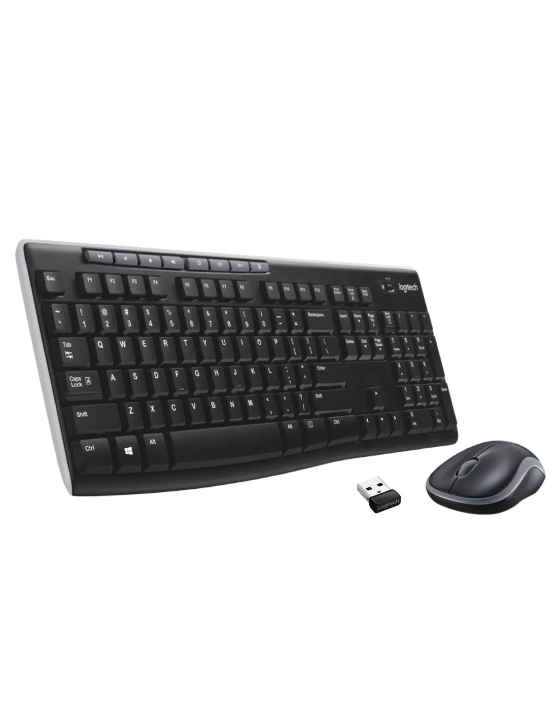 TECLADO + MOUSE LOGITECH MK270 WIRELESS INGLESTecnología inalámbrica avanzada de 2,4 GHzPara trabajar o jugar desde más lugares como si estuvieses en el sofá: laconexión inalámbrica elimina casi por completo retrasos, interrupciones einterferencias y ofrece un alcance de hasta 10 metros*Más información sobre las tecnologías inalámbricas de Logitech. >,Logitech Unifying receiverReceptor Logitech UnifyingEl minúsculo receptor permanece en la laptop. Además, puedes agregarfácilmente otro mouse, teclado o teclado numérico inalámbrico compatible,sin la complicación de tener que usar varios receptores USB.Más información sobre el receptor Unifying. >,Carry-around mouseMouse portátilCon un tamaño práctico y el minúsculo nano receptor que se almacenadentro, el atractivo mouse se lleva fácilmente con la computadora.Extended battery lifeDuración de baterías prolongadaLas baterías del teclado ofrecen una duración de 24 meses y las del mouse12, y mientras tanto vive sin preocupaciones de cambios de baterías .**Te preocupa la duración de las baterías? Lo entendemos perfectamente.Más información.Eight hot keysOcho botones de acceso rápidoTus actividades más frecuentes muy a mano con ocho botones de accesorápido para acceder inmediatamente a películas, música, Internet, correoelectrónico, funciones de reproducción/pausa, volumen y mucho más.Cambiar la velocidad del cursor? Cambiar el cursor? Cambiar losbotones programables? Más información sobre el software SetPoint. >,Full-size, spill-resistant keyboardTeclado de tamaño normal resistente a salpicadurasEl teclado de tamaño normal con teclado numérico, teclas de dirección ynueve teclas F es cómodo, práctico y robusto.Escribir puede ser fatigoso. Descubre la comodidad que te ofrece Logitech.Más información. >,Plug-and-play simplicitySimplicidad Plug and PlayLa instalación es facilísima: basta con conectar el receptor inalámbrico alpuerto USB de la computadora para empezar a usar el tecladoinmediatamente sin software.* El radio de acción inalámbrico depende de las condiciones ambientales yde la computadora.** Duración de las baterías de teclado calculada según una estimación dedos millones de pulsaciones al año en un entorno empresarial. No segarantiza la misma experiencia. La duración de las baterías del mousedepende del uso y de la computadora.