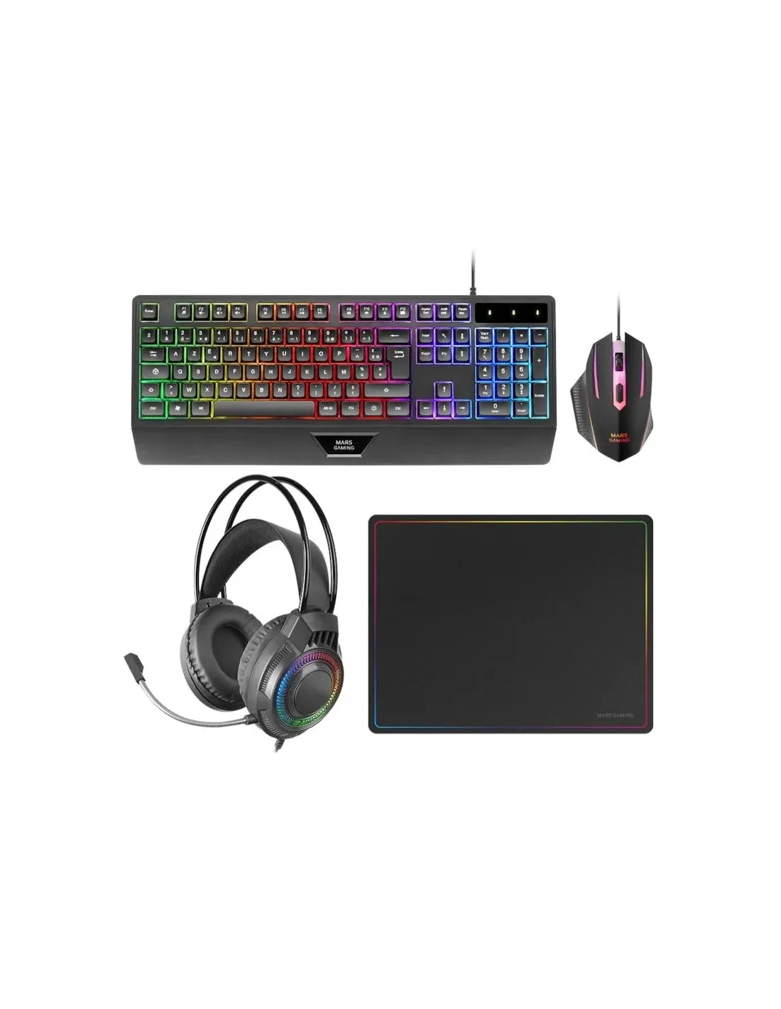Marca MSI Modelo MCP124PROES Características Teclado - Tecnologia: membrana - Tipo de switch: H-Mech - Duracion teclas: 20 millones - Conector: USB 2.0 - Material: ABS Raton - Sensor optico - DPI: 800, 1.200, 1.600, 3.200 - 4 x botones - Ergonomia: diestro - Voltaje: 5 V DC - Longitud cable: 145 cm Auriculares - Sonido: estereo - Driver dinamico 40 mm neodimio - Impedancia: 32 ohmios - Sensibilidad: 105 dB +/-3 dB - Frecuencia: 20 Hz a 20 kHz - Microfono omnidireccional flexible - Frecuencia microfono: 100 Hz a 10 kHz - Sensibilidad microfono: -54 dB +/-3 dB - Conector: Jack 3,5 mm audio + mic + USB alimentacion LED Alfombrilla - Grosor: 3 mm - Base: caucho natural - Superficie: nanotextil Compatibilidad - Windows, Linux, Mac - PS4, PS5 - Xbox One, Xbox Series X/S - Nintendo Switch Dimensiones y peso - Raton: 133 x 85 x 42 mm - 660 g Contenido - 1 x Teclado - 1 x Raton - 1 x Auriculares - 1 x Alfombrilla Fecha de revisión 24-02-2026 por IS