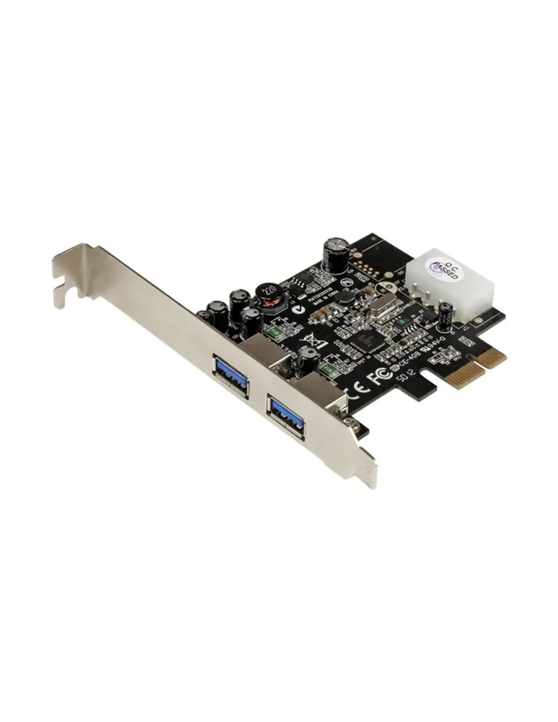 Características del StarTech.com Adaptador PCI Express a 2 Puertos USB 3.0 con alimentación Molex LP4 y UASPEl **adaptador PCI Express de StarTech.com** es una solución eficaz y compacta para **ampliar la conectividad USB 3.0 en tu equipo de sobremesa**. Diseñado para usuarios que requieren **transferencias de datos rápidas y compatibles con dispositivos USB antiguos**, este controlador de puertos está preparado para ofrecer una experiencia estable y de alto rendimiento en entornos tanto domésticos como profesionales.Expansión de conectividad con velocidad SuperSpeedGracias a su interfaz PCI Express x1 y al soporte del protocolo **USB 3.0 con UASP**, este adaptador permite alcanzar **velocidades de transferencia de hasta 5 Gbps**, ideales para discos duros externos, hubs o periféricos de alto consumo. La tarjeta incorpora dos puertos USB 3.0 Tipo A de 9 clavijas y es compatible con versiones anteriores de USB (1.1 y 2.0), garantizando la máxima flexibilidad.2 puertos USB 3.0 externos (Tipo A, 9 clavijas)Velocidad de transferencia de hasta 5 GbpsCompatibilidad con USB 1.1, 2.0 y 3.0Diseño compacto y alimentación estableEste adaptador incluye un conector de alimentación Molex LP4, asegurando un suministro eléctrico adecuado para dispositivos exigentes. Además, se entrega con un **soporte de perfil bajo**, lo que lo hace ideal para **instalaciones en chasis compactos o de bajo perfil**. Cumple con normativas como FCC y RoHS, garantizando fiabilidad y cumplimiento normativo.Incluye soporte de bajo perfil para equipos compactosAlimentación adicional mediante conector LP4 MolexDiseño plug-and-play en sistemas Windows y LinuxCompatibilidad con sistemas y software incluidosEste adaptador es compatible con una amplia gama de sistemas operativos, desde **Windows Vista hasta Windows 10 y Server 2019**, además de distribuciones Linux con kernel de versiones 2.6.31 hasta 4.11.x LTS. Incluye controladores y utilidades necesarias para su configuración.Sistemas compatibles: Windows Vista, 7, 8, 10, Server 2008-2019, Linux LTSIncluye drivers y utilidadesFácil instalación en cualquier PC con ranura PCIe libreOtras especificacionesTipo de dispositivo: Adaptador USBInterfaz de bus: PCI Express x1Dimensiones: 12.1 cm (alto) x 6.7 cm (profundidad) x 1.9 cm (ancho)Peso: 90 gTemperatura de funcionamiento: de 0 °C a 50 °CHumedad en funcionamiento: 5% - 85%Diseñado para modelos: CFASTRWU3, S251SMU33EP, ST4300U3C1, ST93007U2C y otros