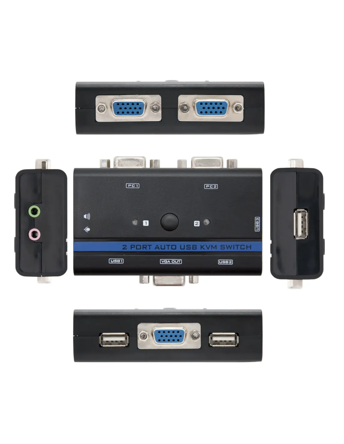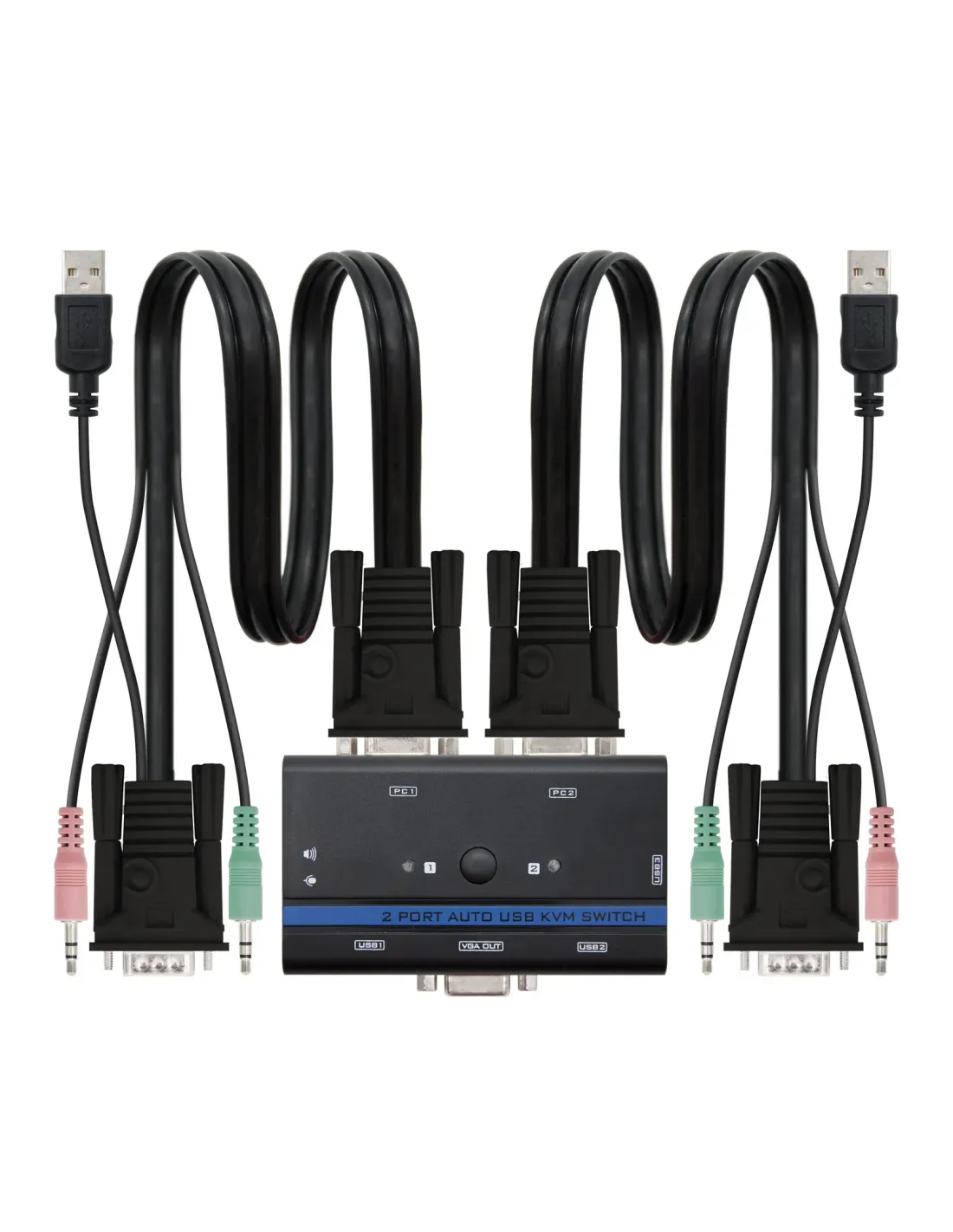 Este KVM switch es un dispositivo que puede controlar dos ordenadores con un solo teclado, ratón, monitor y altavoces