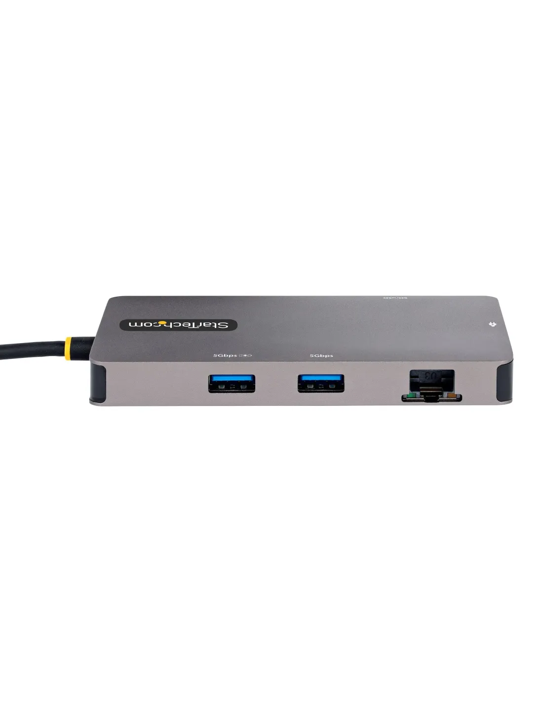 Características del StarTech.com 120B-USBC-MULTIPORTEl **adaptador multipuerto USB-C StarTech.com (modelo 120B-USBC-MULTIPORT)** es una solución compacta y potente para quienes necesitan **máxima conectividad en movimiento**. Diseñado como una estación de conexión portátil, este hub convierte un solo puerto USB-C en una extensión completa de puertos: **HDMI 4K, USB-A, Ethernet, lector de tarjetas y más**, ideal para profesionales, viajeros frecuentes o estudiantes que trabajan desde distintos dispositivos.Conectividad 360° en un solo dispositivoCon este adaptador puedes convertir tu portátil en una verdadera estación de trabajo. Gracias a su variedad de puertos y compatibilidad con monitores dobles, trabajar con eficiencia y productividad desde cualquier lugar es más sencillo.2 puertos HDMI con resolución hasta 4K a 60 Hz2 puertos USB 3.2 Gen 1 Tipo A (uno con carga BC 1.2)Puerto Ethernet Gigabit RJ-45Lector de tarjetas SD y microSDDiseño compacto y alimentación de alto rendimientoEste hub no solo es potente, también está pensado para la portabilidad. Con un cable integrado de 30 cm y un diseño ultrafino de solo 1,4 cm de altura, puedes llevarlo contigo en cualquier bolsa o mochila. Además, permite carga directa al portátil mediante su puerto USB-C con soporte para **Power Delivery de hasta 100 W**.Cable USB-C integrado de 30 cmSuministro de energía por USB-C de hasta 100 W (paso a través)Diseño ultracompacto: solo 165 g de pesoCompatibilidad ampliada y funciones avanzadasCompatible con sistemas operativos **Windows 7 a 11** y **Chrome OS**, este adaptador permite utilizar simultáneamente dos pantallas gracias a la tecnología **MST (Multi-Stream Transport)**. También es compatible con **HDR10**, cuenta con funciones como **Wake on LAN** y **Fast Role Swap**, y cumple con múltiples normativas internacionales.Compatible con Microsoft Windows y Chrome OSAdmite MST para pantalla doble y modo DisplayPort AltCertificaciones: USB PD 3.0, DisplayPort 1.4, UASP, RoHS, WEEEFiabilidad garantizadaComo es habitual en los productos StarTech.com, este adaptador incluye **3 años de garantía limitada**, ofreciendo tranquilidad y respaldo ante cualquier incidencia técnica o de funcionamiento.Garantía limitada de 3 añosIndicador LED de estadoDiseño en color gris espacio elegante y discretoOtras especificacionesDimensiones: 14,5 cm (ancho) x 5,9 cm (profundidad) x 1,4 cm (alto)Temperatura de funcionamiento: de 0 °C a 45 °CProtocolos de red: Ethernet, Fast Ethernet, Gigabit EthernetSoporte para Display Stream Compression (DSC)Soporte para UASP (USB Attached SCSI Protocol)