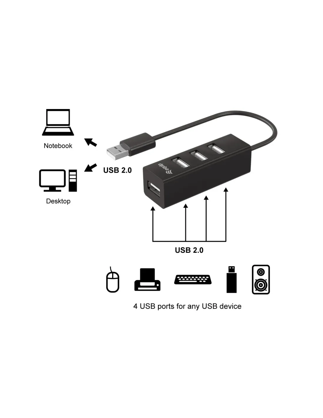 Hub usb equip usb tipo a a 4 puertos usb 2.0