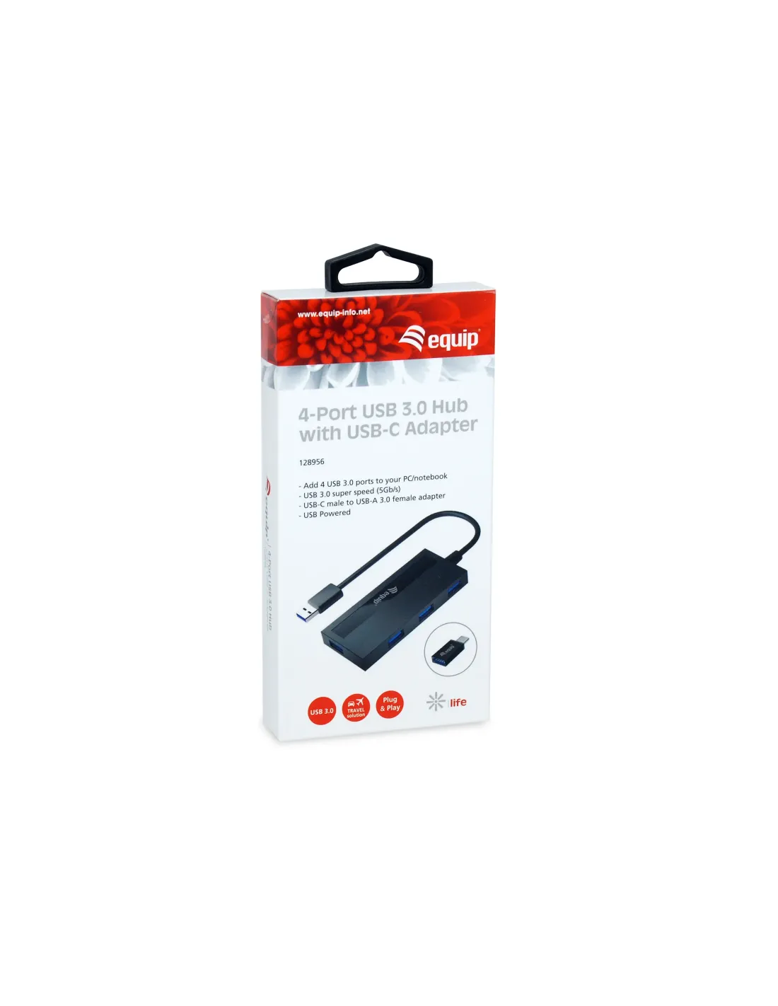 Hub usb equip life 4 x usb 3.0 + adaptador usb tipo c