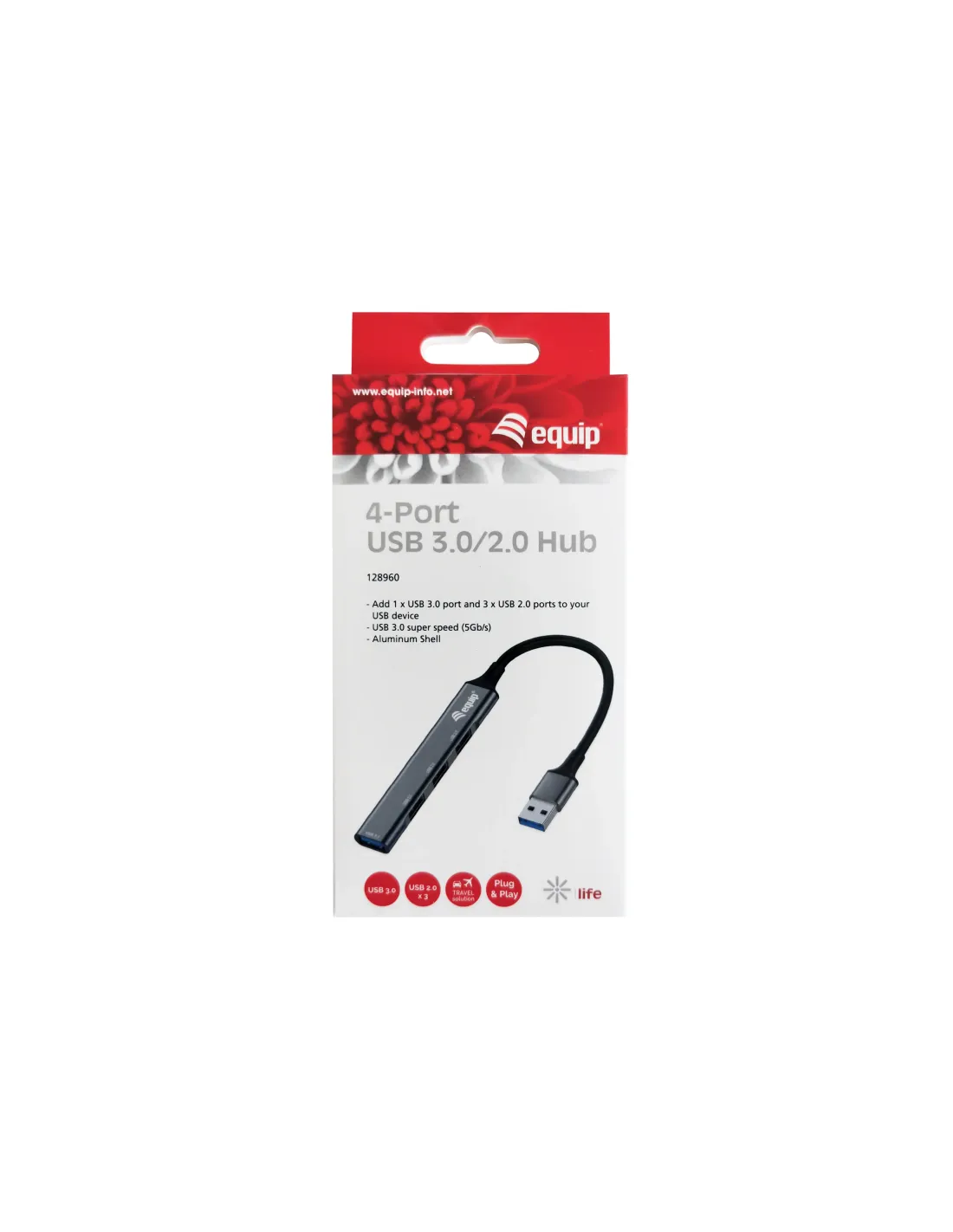 Hub usb equip life 1 x usb 3.0 - 3 x usb 2.0 - aluminio