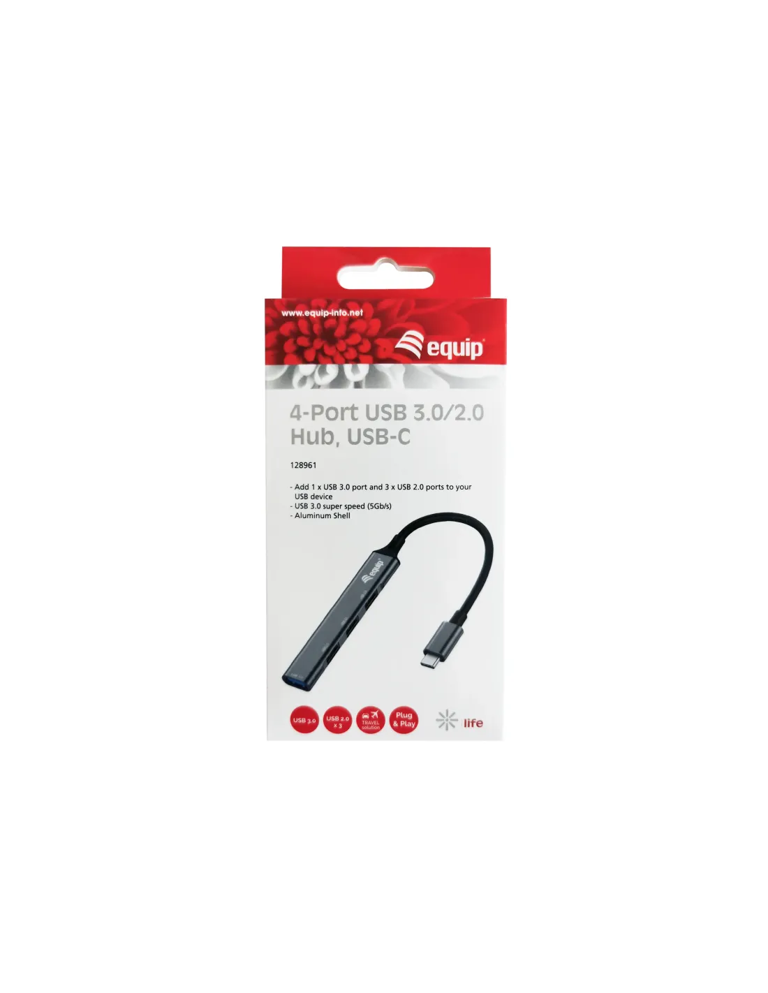 Hub usb tipo c equip life 1 x usb tipo c - 3 x usb 2.0 - aluminio