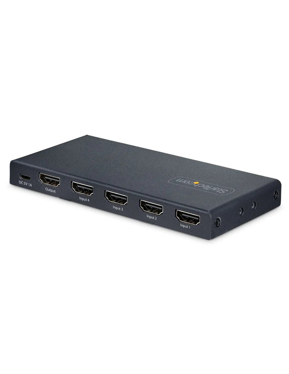 StarTech.com Switch Conmutador HDMI de 4 Puertos de 8K a 60Hz - Switch Selector HDMI 2.1 de 4K a 120Hz HDR10+ UHD - 4 Puertos de Entrada y 1 de Salida - Automático y Manual, HDMI, MicroUSB, Metal, Negro, 5 m, 1920 x 1080 (HD 1080), 1920 x 1200 (WUXGA), 2560 x 1080, 2560 x 1440, 3440 x 1440, 4096 x 2160,...