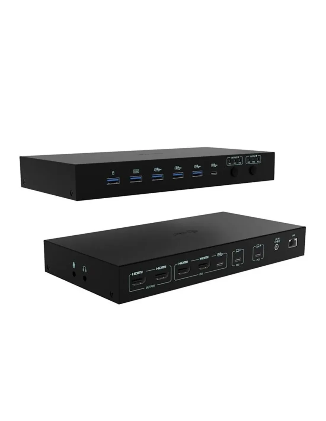 Características de la Estación de Acoplamiento C31KVMDOCKPDPROLa estación de acoplamiento **C31KVMDOCKPDPRO** está pensada para entornos profesionales exigentes, creadores de contenido o usuarios avanzados que necesitan trabajar con varios dispositivos de forma simultánea. Gracias a su arquitectura versátil y potencia de carga inteligente, esta docking station permite conectar hasta tres equipos host (portátiles, tabletas o consolas) y trabajar con dos monitores externos al mismo tiempo. Una solución ideal para quienes buscan **productividad máxima sin complicaciones**.Conectividad avanzada para múltiples dispositivosDiseñada para un uso intensivo y flexible, esta estación de acoplamiento permite la conexión simultánea de **hasta tres dispositivos host** y dos pantallas externas, lo que abre posibilidades para configuraciones de trabajo paralelas, presentaciones o gaming profesional. Además, su compatibilidad es total con portátiles que dispongan de **USB-C, USB4 o Thunderbolt 3/4/5**.Conexión vía 1-2× HDMI y USB para PC o consolaAdmite hasta 2 monitores externos con fuentes distintasCompatible con Windows, macOS y sistemas con USB-CFunción KVM con intercambio USB inteligenteUna de sus funcionalidades estrella es la **itinerancia USB**, que permite compartir teclado y ratón entre dos dispositivos host mediante puertos USB dedicados. Esto garantiza una transición fluida entre equipos sin necesidad de reconectar periféricos, mejorando la eficiencia en entornos de trabajo dual.2 puertos USB dedicados para teclado y ratónCambio rápido entre dos sistemas hostIdeal para estaciones de trabajo compartidas o setups dualesAlta velocidad y potencia de carga inteligenteIncluye 4 puertos USB de **alta velocidad (10 Gbps)** para conectar discos externos, impresoras o periféricos avanzados, además de puertos **GLAN**, de **audio** y **micrófono**. La carga inteligente integrada proporciona hasta **92 W** para un portátil o **65 W para cada uno** si hay dos dispositivos conectados simultáneamente.4 puertos USB 10 GbpsPuerto Ethernet (GLAN), entrada de audio y micrófonoCarga inteligente de 92 W o doble carga de 65 WDiseño funcional y selección de salidas flexibleGracias a sus **dos selectores de salida**, el usuario puede elegir entre usar ambos monitores con un solo equipo o dividir la salida entre dos dispositivos distintos, maximizando la eficiencia y la multitarea.Selector para modo doble host o pantalla extendidaCuerpo compacto en material ABS resistenteDiseño profesional en color negroOtras especificacionesTipología: Docking stationFunción principal: Expansión de puertos para portátilesMaterial: Sintético ABSColor: NegroEthernet: Sí (conmutador de red)Dimensiones: 240 mm (longitud) x 115 mm (profundidad) x 30 mm (altura)Peso: 797 g