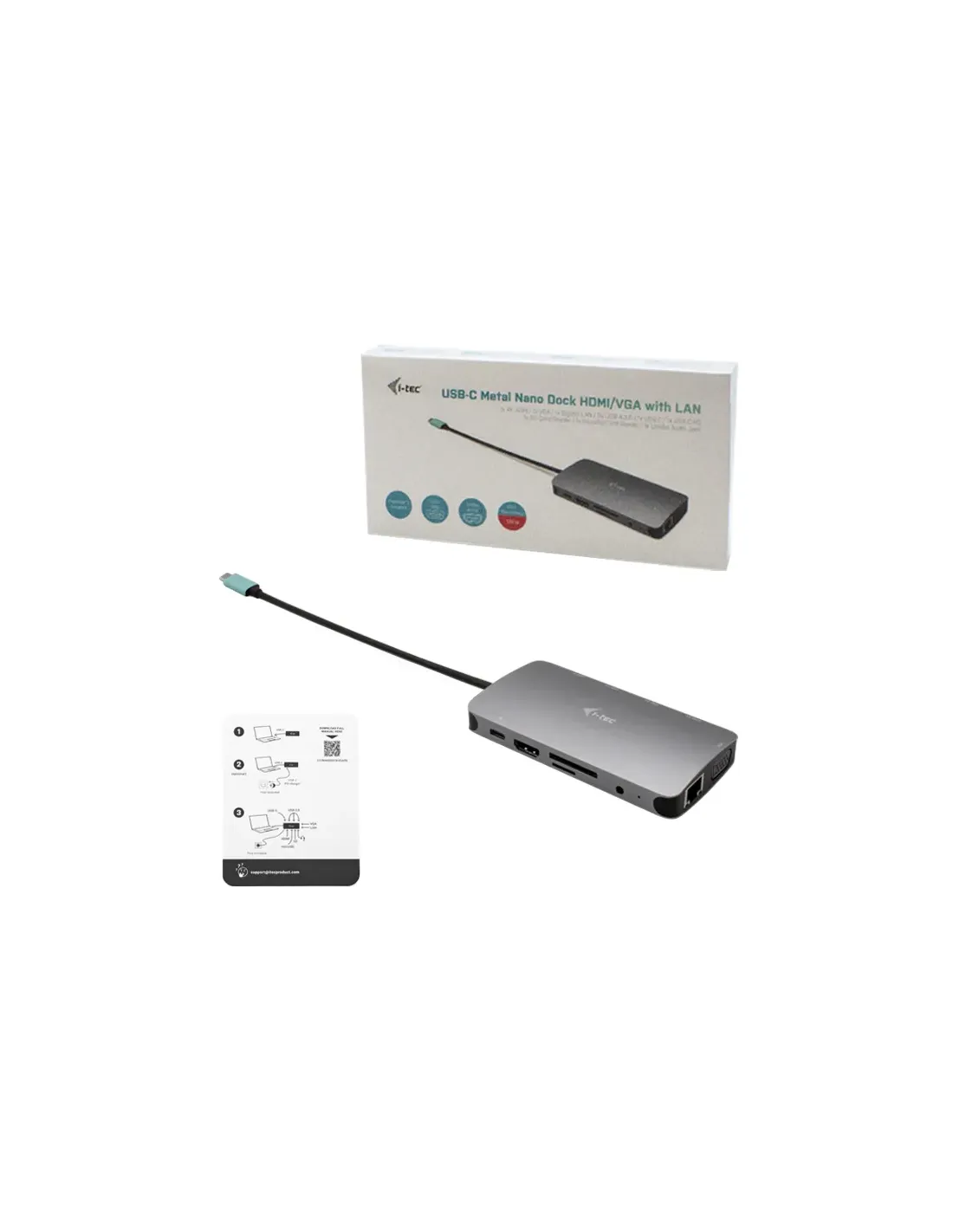 i-tec Metal USB-C Nano Dock HDMI/VGA with LAN + Universal Charger 77 W, Alámbrico, USB 3.2 Gen 1 (3.1 Gen 1) Type-C, 100 W, 3,5 mm, 10,100,1000 Mbit/s, Plata
