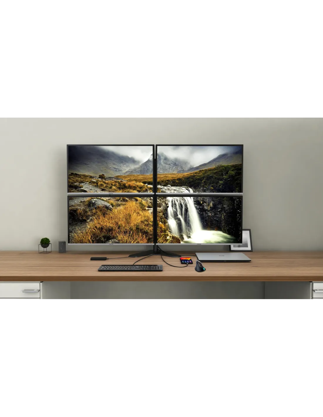 Estación de acoplamiento USB-C profesional que soporta la salida de hasta cuatro monitores externos. Esta estación de acoplamiento dispone de procesamiento híbrido de la imagen: basado en las tecnologías de transmisión de vídeo DisplayLink y USB-C, lo que permite el procesamiento de la imagen en hasta cuatro monitores diferentes.La estación es compatible con cualquier notebook equipado con puerto USB-C (con soporte de transmisión de vídeo) o Thunderbolt 3. 6x puerto USB, conexión de red fiable y rápida a la red de la empresa gracias al puerto LAN integrado y con soporte de instalación detrás del monitor.Todo esto convierte a esta estación de acoplamiento en el socio ideal de los profesionales más exigentes. Permite el soporte de la carga del notebook o tableta hasta 85 W.Conecte hasta 4 monitores externosPower delivery: hasta 85 W2 puertos DisplayPort y 2 puertos HDMI5x USB 3.0 y 1x USB-C le permiten conectar fácilmente sus dispositivos y periféricos USB.El puerto Ethernet RJ-45 Gigabit facilita una conexión a Internet fiable, robusta y a velocidad alta soportando velocidades de 10/100/1000 Mbps.2x jack para audio y micrófonoEl cerrojo Kensington garantiza la protección contra la sustracción, sobre todo, en el ambiente de oficinas compartidas y otros lugares accesibles al públicoEl interruptor de la estación de acoplamiento permite un máximo ahorro de energía eléctricaLa estación de acoplamiento soporta el soporte VESA para la instalación vertical detrás del monitor.Soporta Windows 10, macOS*, Android y Linux* Nota: el sistema operativo macOS no soporta la tecnología de la transmisión de vídeo en varias imágenes Multi Stream Transport (MST), es decir, en el caso de la conexión con macOS, en los cuatro monitores conectados se verá la misma imagen.