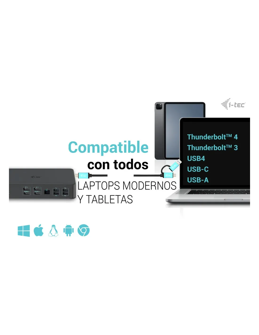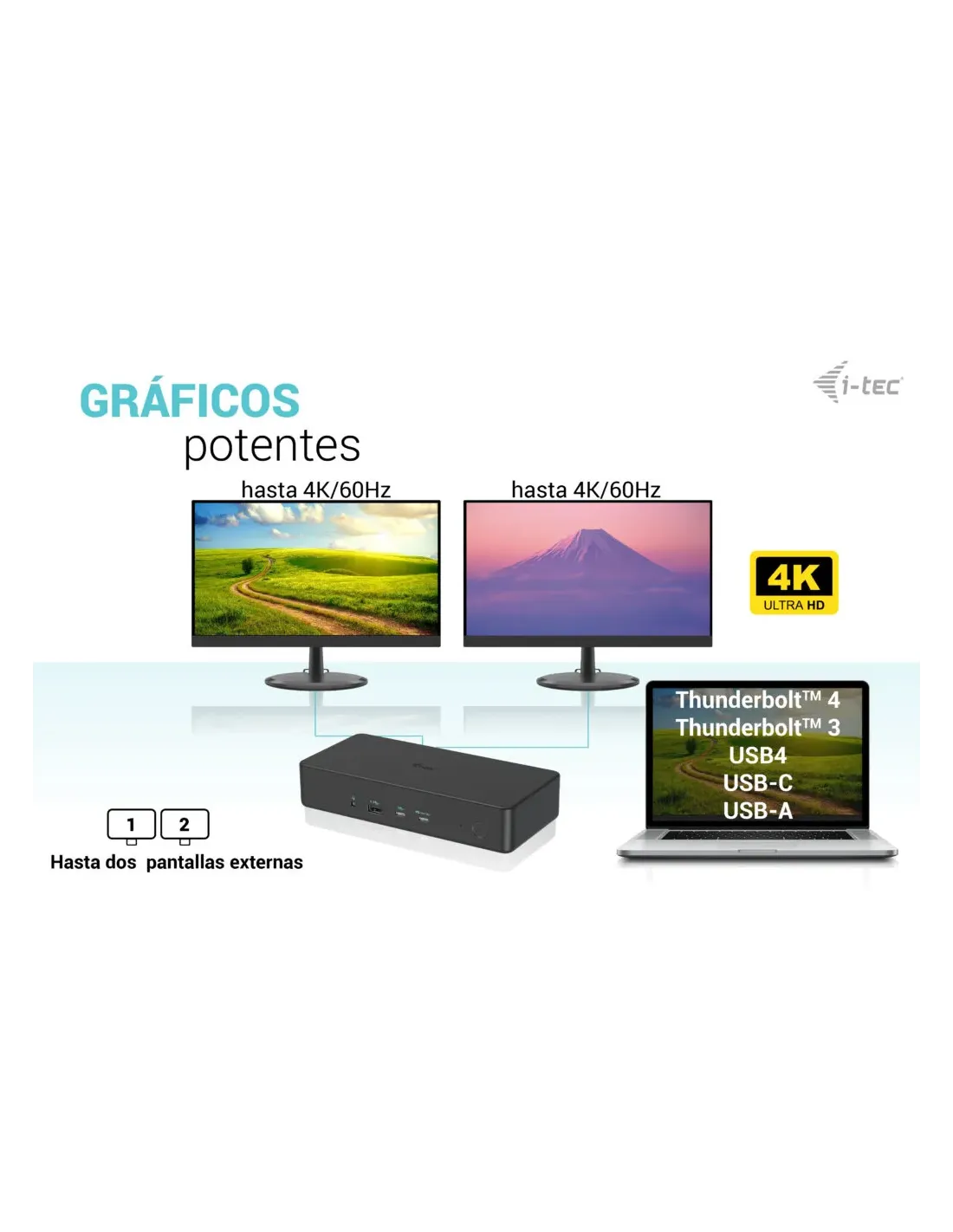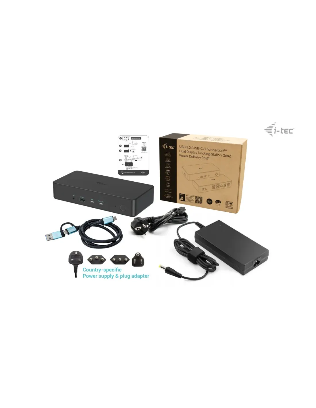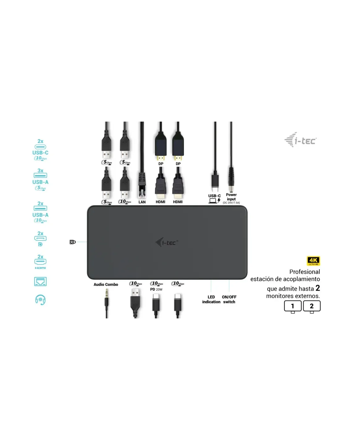 i-tec USB 3.0 / USB-C / Thunderbolt 3 Professional Dual 4K Display Docking Station Generation 2 + Power Delivery 100W, Alámbrico, USB 3.2 Gen 1 (3.1 Gen 1) Type-C, 100 W, 3,5 mm, 10,100,1000 Mbit/s, Negro