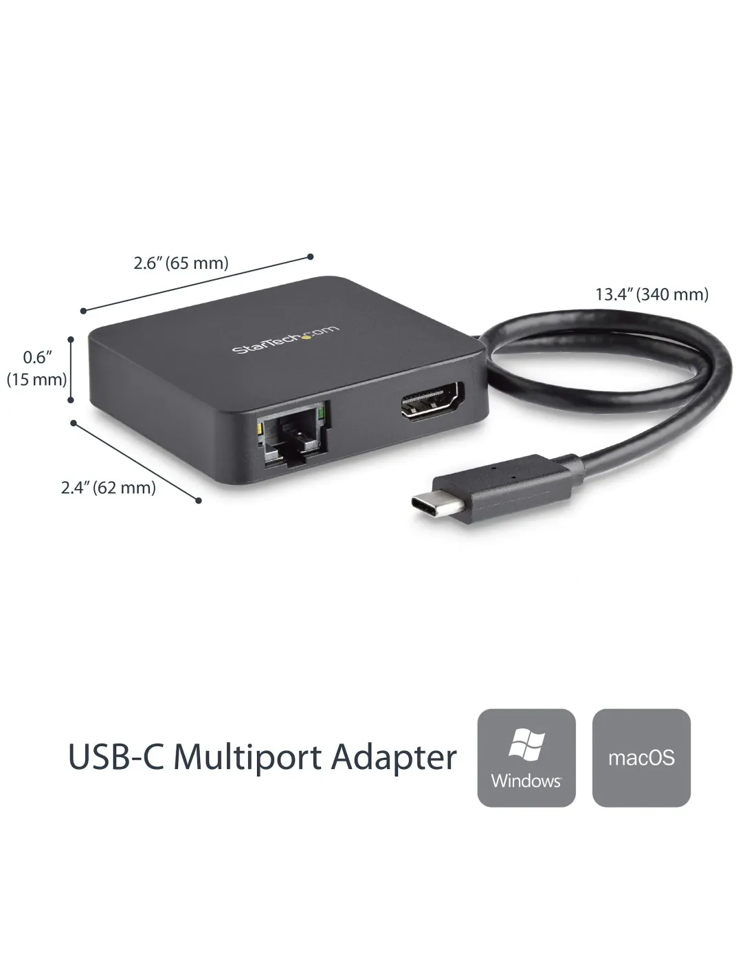 StarTech.com Adaptador Multipuertos USB C - Mini Dock Portátil USB-C 4K HDMI - Gigabit Ethernet - Hub USB 3.0 (1x USB-A 1x USB-C) - Adaptador Multi USB TipoC - Compatible con Thunderbolt 3, Alámbrico, USB 3.2 Gen 1 (3.1 Gen 1) Type-C, 10,100,1000 Mbit/s, 10BASE-T, 100BASE-TX, 1000BASE-T, IEEE 802.3, IEEE 802.3ab, IEEE 802.3u, Negro