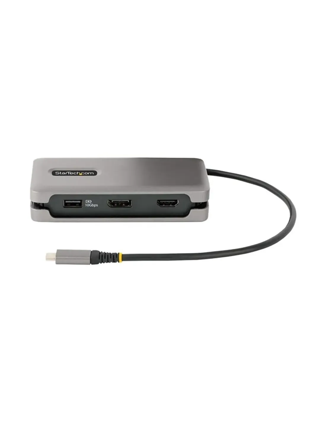 -TIPO DE PRODUCTOEstación de conexión-COLOR DE CAJAGris espacio-PESO130 g-DIMENSIONESAltura: 2.5 cmAnchura: 6.4 cmProfundidad: 12.4 cm-INTERFACES1 x HDMI (19 patillas tipo A)1 x DisplayPort (20 patillas)2 x USB-C 3.2 Gen 2 (USB Tipo A de 9 clavijas)1 x USB-C 3.2 Gen 2 (24 pin USB-C)1 x USB-C con suministro de potencia (100 W) (24 patillas, solo alimentación)1 x RJ-45 (10Base-T/100Base-TX/1000Base-T)-CABLES INCLUIDOS1 x cable USB-C 3.2 Gen 2 integrado (30 cm)-CARACTERÍSTICASHasta 10 Gbps de transferencia de datosCompatibilidad con entorno de ejecución de prearranque (PXE)Soporte de dúplex completoSuministro de energía de 100 W (paso a través)Carcasa de plásticoCarga a 84 W2 indicadores LEDWake on LANDisplayPort Alt Mode-CUMPLIMIENTO DE NORMASDisplayPort 1.4RoHSWEEERCMUSB 3.2 Gen 2-CONEXIÓN DE REDESProtocolo de interconexión de datos: Ethernet, Fast Ethernet, Gigabit Ethernet-ALIMENTACIÓNDispositivo de alimentación: Adaptador de corrientePotencia suministrada: 16 W-DETALLES DE RESOLUCIÓN MÁXIMA4096 x 2160 - 60 Hz-PARÁMETROS DE ENTORNOTemperatura mínima de funcionamiento: 0 °CTemperatura máxima de funcionamiento: 50 °C-SISTEMA OPERATIVO REQUERIDOMicrosoft Windows 7 / 8 / 8.1 / 10 / 11Ubuntu 18.04Ubuntu 20.04Google Chrome OSApple macOS 10.15Apple macOS 11Apple macOS 12Apple macOS 13.0AndroidLinux-GARANTÍA DEL FABRICANTEGarantía limitada: 3 años-DIMENSIONES Y PESO (EMBALAJE)Altura de embalaje: 3 cmProfundidad de embalaje: 17 cmAnchura de embalaje: 14.2 cmPeso de embalaje: 154 g-BENEFICIOSEstación de conexión versátil y compactaAlta velocidad de transferencia de datos hasta 10 GbpsCompatibilidad con múltiples sistemas operativosSoporte para pantallas de alta resolución 4KSuministro de energía de hasta 100 W para carga de dispositivosConectividad de red avanzada con Wake on LANIdeal para entornos profesionales y estaciones de trabajo flexibles