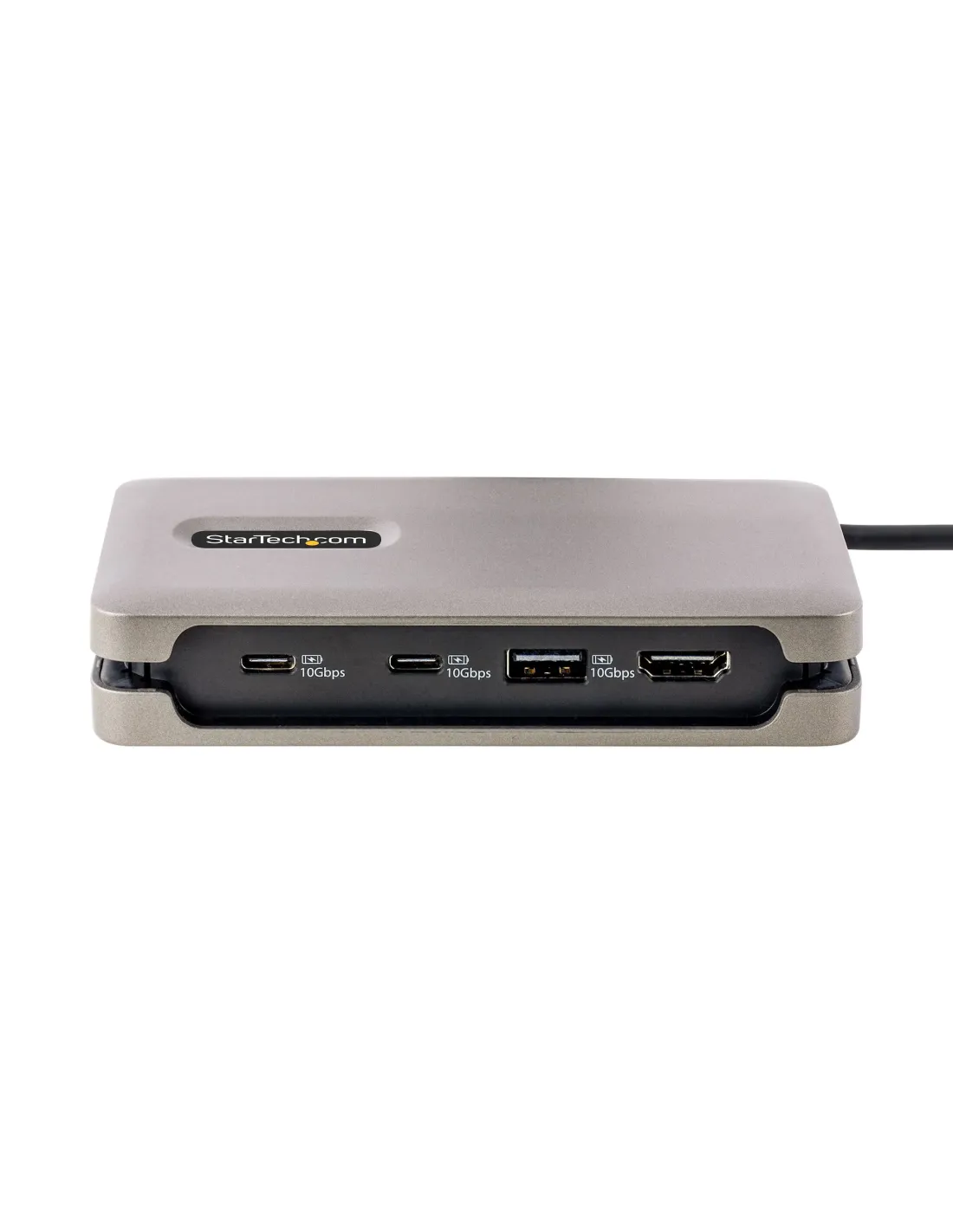 -GENERALTipo de producto: Estación de conexiónColor de caja: Gris espacioAnchura: 6.5 cmAltura: 2.5 cmProfundidad: 12.5 cmPeso: 98 g-EXPANSIÓN / CONECTIVIDADInterfaces:1 x salida HDMI (19 patillas Tipo A)1 x USB 3.2 Gen 2 con Battery Charging 1.2 - USB Tipo A de 9 clavijas2 x USB-C 3.2 Gen 2 - 24 pin1 x USB-C solo alimentación (Power Delivery 100 W) - 24 patillas1 x red RJ-45 (10/100/1000 Mbps)-VÍDEOResolución máxima: 3840 x 2160 a 60 HzCompatibilidad HDR: HDR10-CARACTERÍSTICASTransferencia de datos hasta 10 GbpsCompatibilidad con entorno de ejecución de prearranque (PXE)Soporte de dúplex completoCarcasa de plásticoSuministro de energía de 100 W (paso a través)Wake on LANCumplimiento con DisplayPort 1.4, USB Power Delivery 3.0, UASP-CONECTIVIDAD DE REDProtocolos: Ethernet, Fast Ethernet, Gigabit EthernetNorma USB: USB 3.2 Gen 2-ALIMENTACIÓNDispositivo de alimentación: Adaptador de corrientePotencia suministrada: 15 vatios-CABLES INCLUIDOS1 x cable USB-C 3.2 Gen 2 integrado (30 cm)-GARANTÍA DEL FABRICANTEServicio y mantenimiento: Garantía limitada - 3 años-CUMPLIMIENTO DE NORMASDisplayPort 1.4USB Power Delivery 3.0UASPFCCRoHSWEEE-PARÁMETROS DE ENTORNOTemperatura mínima de funcionamiento: 0 °CTemperatura máxima de funcionamiento: 50 °C-REQUISITOS DEL SISTEMASistemas operativos compatibles:Microsoft Windows 10 / 11Apple macOS 10.15, 11.0, 12.0, 13.0Apple iPadOSAndroidLinux Kernel 4.x o posterior (solo versiones LTS)Google Chrome OS-DIMENSIONES Y PESO (EMBALAJE)Altura: 3 cmAnchura: 14.3 cmProfundidad: 17.2 cmPeso: 166 g