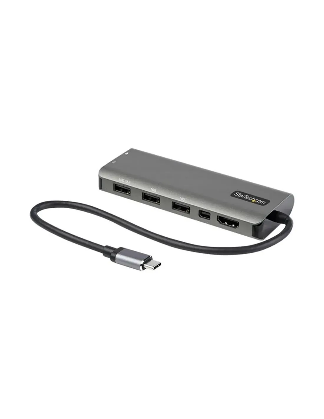 -TIPO DE PRODUCTOEstación de conexión-PESO84.3 g-INTERFACES1 x HDMI (19 patillas tipo A)1 x Mini DisplayPort1 x USB-C 3.2 Gen 2 (24 pin USB-C)1 x USB-C 3.2 de 2ª generación con suministro de energía (100 W) (solo alimentación) (24 pin USB-C)1 x USB 3.2 Gen 2 con Battery Charging 1.2 (USB Tipo A de 9 clavijas)2 x USB 3.2 Gen 2 (USB Tipo A de 9 clavijas)-CABLES INCLUIDOS1 x cable USB-C integrado (30 cm)-CARACTERÍSTICASEntrega de potencia de 100 WDisplayPort Alt Mode-CUMPLIMIENTO DE NORMASDisplayPort 1.4USB Power Delivery 3.0FCCRoHS-DETALLES DE RESOLUCIÓN MÁXIMA4K - 60 Hz (solo DisplayPort 1.4)4K - 30 Hz (solo DisplayPort 1.2)-SISTEMA OPERATIVO REQUERIDOWindows 8.1 / 10 / 11Apple macOS 10.13 - 10.15Apple macOS 11.0Apple macOS 12.0Apple macOS 13.0Google Chrome OSUbuntu 18.04Ubuntu 20.04Apple iPadOSAndroid-GARANTÍA DEL FABRICANTEGarantía limitada: 3 años-DIMENSIONES Y PESO (EMBALAJE)Altura de embalaje: 3 cmProfundidad de embalaje: 17 cmAnchura de embalaje: 14 cmPeso de embalaje: 153 g-BENEFICIOSEstación de conexión ultracompacta y ligeraSoporte para video en resolución 4K hasta 60 HzEntrega de potencia de hasta 100 W para carga de dispositivosConectividad avanzada con HDMI, Mini DisplayPort, USB-C y USB-ACompatible con múltiples sistemas operativos, incluyendo Linux, macOS, Windows, Android e iPadOSIdeal para configuraciones móviles y estaciones de trabajo flexiblesCumple con los estándares de calidad y sostenibilidad