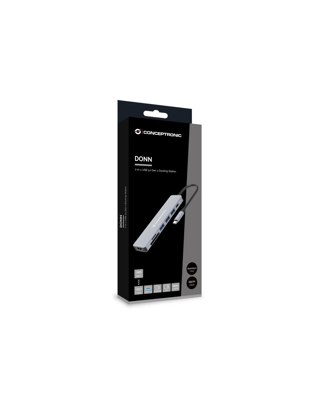 Conceptronic DONN19G, Alámbrico, USB 3.2 Gen 1 (3.1 Gen 1) Type-C, 100 W, Gris, MicroSD (TransFlash), SD, 5 Gbit/s