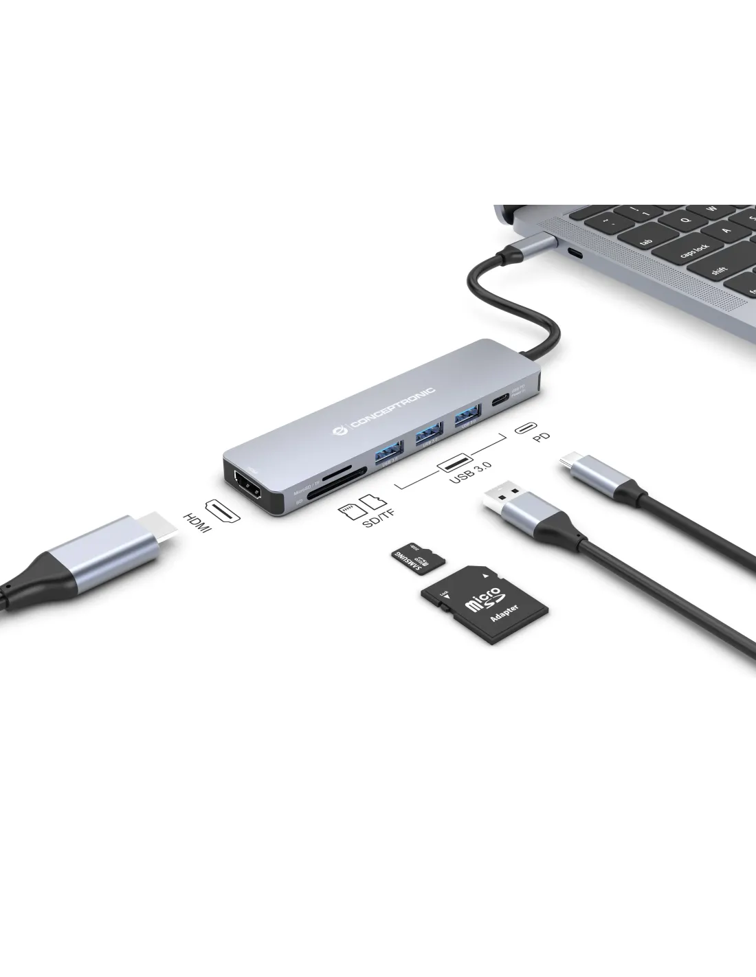 Hub usb tipo c conceptronic donn19g 1 x hdmi - 3 x usb 3.2 - 1 x usb tipo c - lector sd - lector micro sd