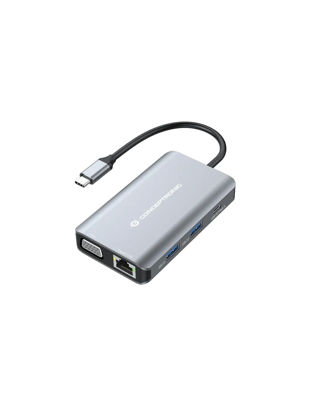 Conceptronic DONN21G, Alámbrico, USB 3.2 Gen 1 (3.1 Gen 1) Type-C, 100 W, 1000 Mbit/s, Gris, 4K Ultra HD