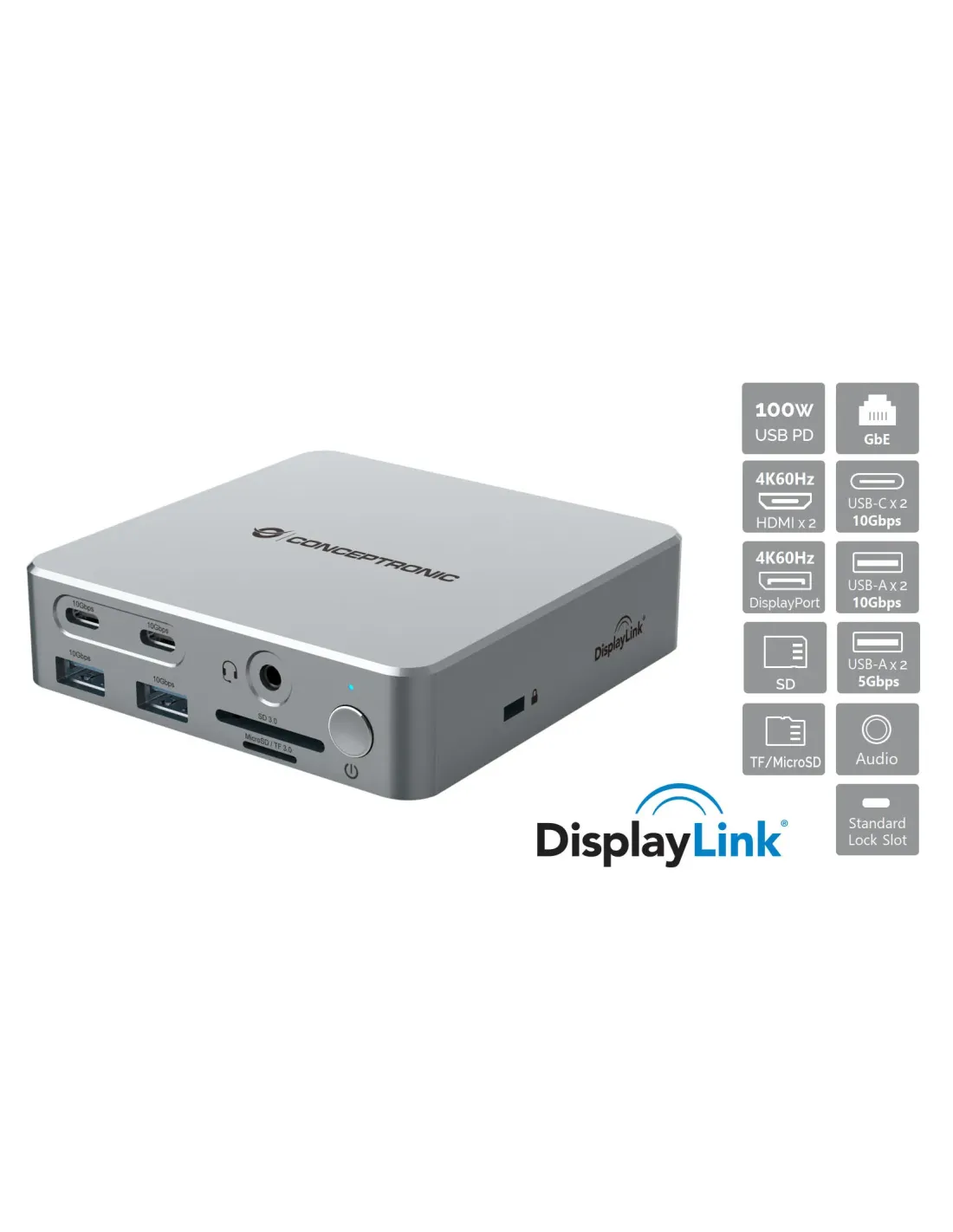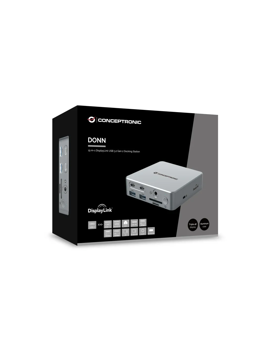 Ficha técnicaColor del producto PlataInterfaz de host USB 3.2 Gen 2 (3.1 Gen 2) Type-CTecnología de conectividad AlámbricoEthernet SiCantidad de puertos tipo A USB 3.2 Gen 1 (3.1 Gen 1) 2Tarjeta de lectura integrada SiNúmero de puertos HDMI 2Salidas para auriculares 1Referencias específicasean13 4015867236611MPN DONN25G