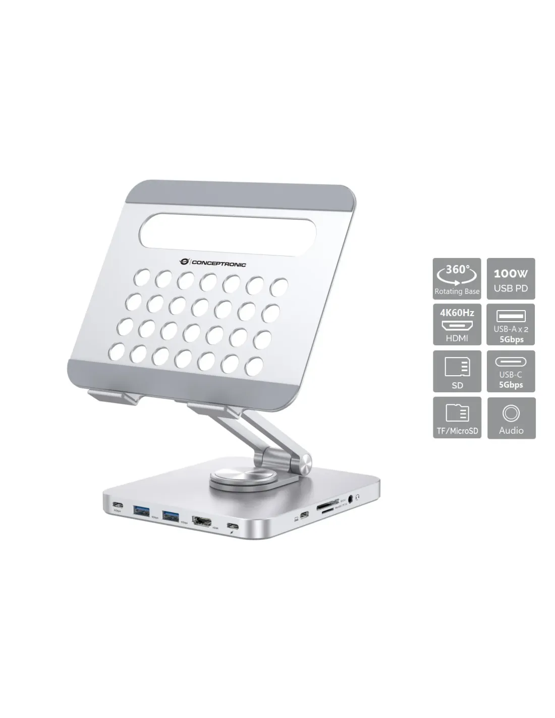 ```- GENERALColor GrisNúmero de modelo DONN26GCódigo EAN 4015867236772Aprobación y conformidad CE, RoHSSistemas operativos compatibles Windows XP/Vista/7/8/10/11 Mac OS X 10.5 o superior Android 5.0 o superior- DIMENSIONES Y PESODimensiones (An. x Pr. x Al.) 160 x 178 x 45 mmPeso 0.56 kg- ESPECIFICACIONES DEL SISTEMAUSB Power Delivery (PD) 100 WAncho de banda 5 GbpsConector USB-C hembraResoluciones soportadas 4K a 60 HzEstándares USB 3.2 Gen 1 SD 3.0 MicroSD 3.0- CONFIGURACIÓN DE PUERTOSHDMI 1 x HDMI 4K60HzUSB-A 2 x USB-A 5GbpsUSB-C 1 x USB-C 5Gbps 1 x USB-C PD 100WLector de tarjetas 1 x SD 1 x TF/MicroSDAudio 1 x salida de audio- ALIMENTACIÓNFuente de alimentación incluida No- CONTENIDO DEL EMBALAJEContenido del paquete DONN26G Cable USB-C a USB-C de 40 cm (100W) Guía de instalación rápida multilingüe```