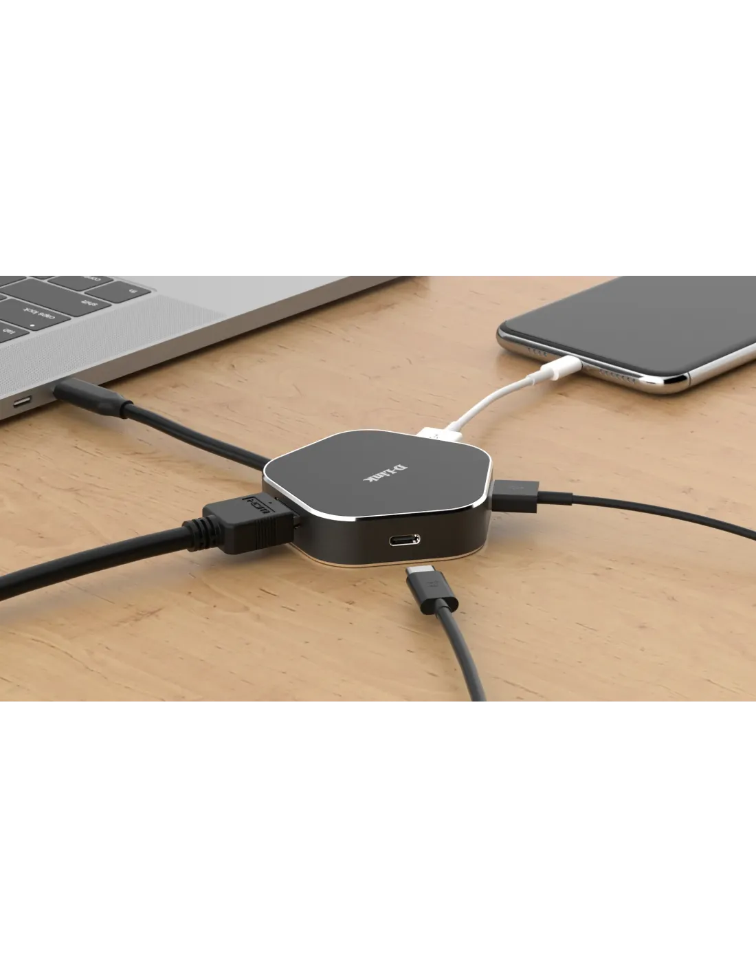 2 puertos SuperSpeed USB 3.01 HDMI, admite resoluciones de hasta 4 K1 puerto USB-C (Thunderbolt 3) con sincronización de datos y entrega dealimentación de hasta 60WDiseño portátil, plug & play, compatible con Mac/Windows/LinuxEn móviles y tabletas Android que soporten OTG y Display Port añade puertored LAN Gigabit, HDMI, almacenamiento USB/Lector SD y dispositivos USB.EspecificacionesHDMINumero de puertos USB2 puertosTipo de puertosHDMIUSB 3.0USB-CUSB-C con suministro de energíaUSB-C con suministro de energíaHasta 60WTipo de dispositivoConcentrador USB