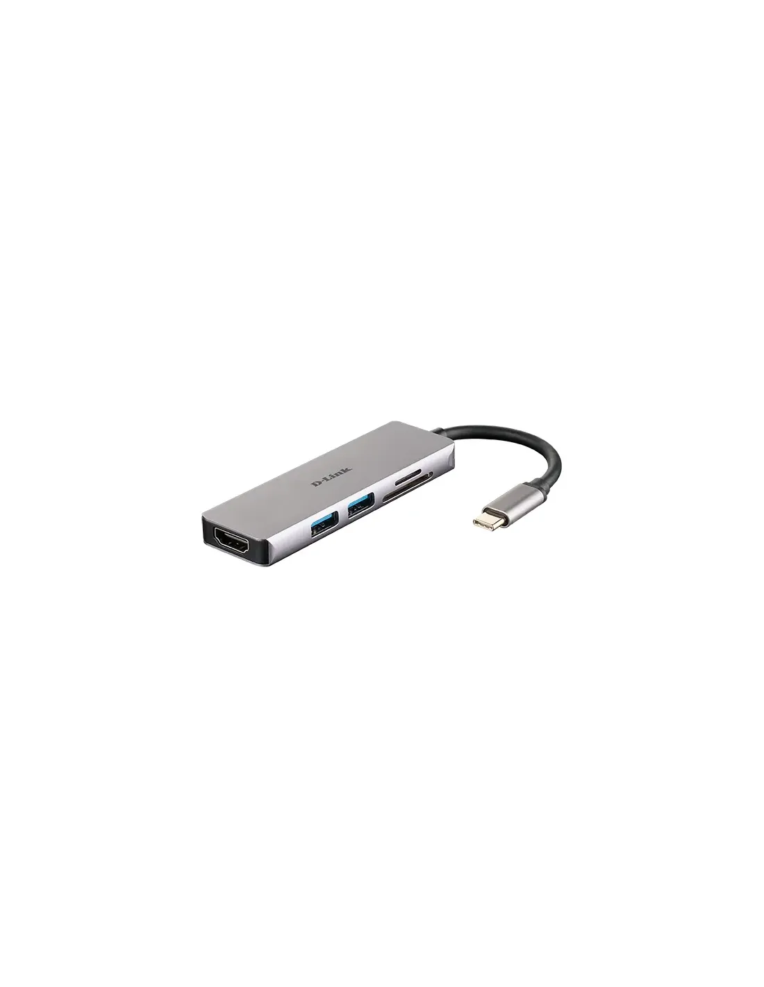 La navaja suiza, 5 en 1Añada instantáneamente una segunda pantalla, un lector de tarjetas SD y microSD de doble ranura y dos puertos USB 3.0 a su ordenador simplemente enchufando el hub en cualquier puerto USB tipo C disponible.Agregue una segunda pantalla a resoluciones de hasta 4 KConecte un televisor o monitor como segunda pantalla al puerto 4K HDMI para una resolución de hasta 4 K sin retardo.SuperSpeed USB 3.0Ideal para la transferencia desde unidades USB, teléfonos, tabletas, cámaras y otros periféricos.Plug-and-playAñada más puertos disponibles simplemente conectando el hub a un puerto USB-C. No se requiere software adicional.Lector de tarjetas SD de dos ranurasConecte instantáneamente tarjetas SD/microSD/SDHC/SDXC al hub y realice transferencias rápidas de datos de fotografías y vídeos.Carcasa resistenteDiseño compacto y ligero en gris espacial, con carcasa de aleación de aluminio.Thunderbolt 3Utilice el puerto Thunderbolt 3 para transferir datos, suministrar alimentación o ampliar la pantalla en segundos.MarcaD-LinkModeloDUB-M530Interfaces- 1 x HDMI (3840 x 2160 o 4096 x 2160 píxeles a 30 Hz)- 1 x Ranura para tarjetas Micro SD- 1 x Ranura para tarjetas SD- 2 x puertos USB 3.0 tipo A- 1 x USB tipo C (conformidad con Thunderbolt 3)Características- Dimensiones (An x Al x Pr): 96 × 29 × 9 mm- Longitud del cable: 11,5 cm- Peso: 42,0 gFecha de revisión13-08-2020 por MSB