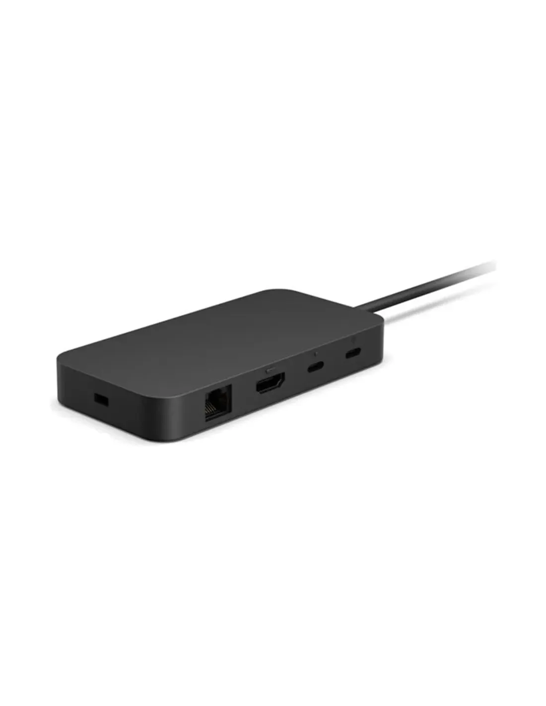 Características del Microsoft Surface USB4 DockEl **Microsoft Surface USB4 Dock** es una estación de conexión compacta y versátil diseñada para ampliar la conectividad de portátiles y dispositivos compatibles con USB4 o Thunderbolt 4. Ideal para profesionales que trabajan en entornos híbridos o estaciones de trabajo fijas, este dock permite gestionar vídeo en alta resolución, red cableada y carga de dispositivos desde un solo punto de conexión. Su diseño minimalista y ligero facilita su transporte y uso en cualquier espacio.Conectividad avanzada con USB4 y Thunderbolt 4El dock está equipado con puertos de última generación, capaces de transferir datos a alta velocidad, transmitir vídeo en 4K y 8K, y cargar dispositivos simultáneamente. Con soporte para monitores duales y paso de energía de hasta 65 W, ofrece una solución todo en uno para entornos profesionales exigentes.2 x puertos Thunderbolt 4 / USB4 Gen 3 (hasta 40 Gbps)1 x HDMI tipo A, compatible con salida de vídeo hasta 8K1 x USB-C con función de carga y vídeo1 x USB-A 3.2 Gen 2 (hasta 7,5 W)Diseño compacto y funcional para el trabajo diarioCon solo 206 gramos de peso y un grosor de 1,5 cm, el Microsoft Surface Dock combina portabilidad y prestaciones profesionales. Su estructura incorpora una ranura de seguridad Kensington, ideal para espacios compartidos, y permite funciones avanzadas como Wake-on-LAN y paso de direcciones MAC para entornos IT.Dimensiones: 12 x 6 x 1,5 cmPeso ligero: 206 gCompatible con PXE Boot, Wake-on-LAN y MAC passthroughSalida de vídeo de alta definición y energía integradaEste dock soporta una configuración de pantalla dual en 4K a 60 Hz, o una pantalla única en resolución 8K a 30 Hz, lo que lo convierte en una opción ideal para creadores de contenido, analistas o cualquier profesional que requiera gran detalle visual. Además, integra una fuente de alimentación de 100 W para mantener tus dispositivos cargados mientras trabajas.Resoluciones soportadas: hasta 8K a 30 Hz / 4K dual a 60 HzFuente de alimentación incluida (100 W)Suministro de energía por USB-C de hasta 65 WConectividad de red estable y seguraGracias al puerto Ethernet Gigabit RJ-45, puedes disfrutar de una conexión de red estable y rápida, ideal para trabajo remoto, videollamadas o transferencia de archivos grandes sin interrupciones.Puerto RJ-45 con soporte Gigabit EthernetSoporte para entornos corporativos segurosCompatibilidad y facilidad de usoEl dock es compatible con equipos Windows y no requiere configuraciones complejas. Solo conecta el cable USB-C integrado de 80 cm y comienza a trabajar con todos tus periféricos conectados.Sistema operativo requerido: WindowsCable USB-C integrado de 80 cmPlug & play sin configuración adicionalOtras especificacionesGarantía limitada del fabricante: 1 añoRanura de seguridad Kensington (bloqueo no incluido)Color: Negro