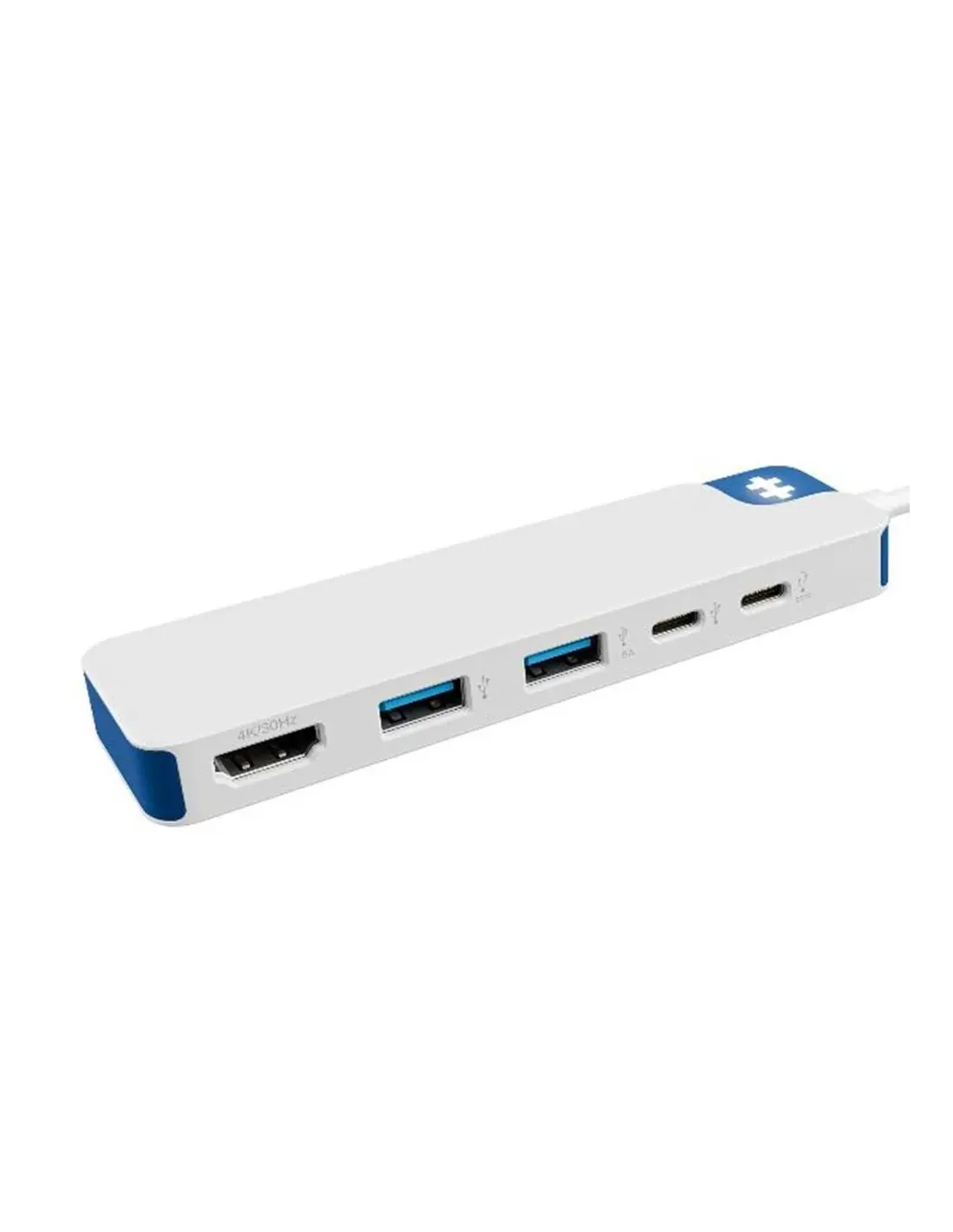 Características del Hub HD4101BUGLEl **hub HD4101BUGL** es una solución compacta y eficiente para quienes necesitan **ampliar la conectividad de su portátil o equipo con puertos USB-C**. Diseñado para ofrecer un rendimiento óptimo con un formato ligero y minimalista, este hub es ideal para estudiantes, profesionales en movimiento o usuarios que trabajan desde casa y requieren **transferencias rápidas y conexiones versátiles**.Conectividad versátil en un solo dispositivoEste hub incluye una selección equilibrada de puertos para cubrir las necesidades más comunes, desde periféricos USB hasta salida de vídeo 4K. Todo ello en un cuerpo compacto, fácil de transportar y autoalimentado.2 puertos USB-A 3.2 Gen 1 (5 Gbps)2 puertos USB-C (uno con Power Delivery de hasta 100W)Salida HDMI compatible con resoluciones hasta 4K a 30HzTransferencias rápidas y carga eficienteGracias a su compatibilidad con el estándar **USB 3.2 Gen 1**, este hub permite velocidades de transferencia de hasta **5.000 Mbit/s**, ideal para mover archivos pesados como vídeos, proyectos de diseño o copias de seguridad en segundos. Además, uno de sus puertos USB-C permite carga mediante **Power Delivery de hasta 100W**, facilitando la alimentación de portátiles compatibles mientras usas el resto de conexiones.Velocidad de transferencia de hasta 5 GbpsUSB-C con carga PD 100WCompatible con periféricos, almacenamiento y monitoresDiseño ultracompacto y ligeroSu diseño en color blanco y peso de solo **10 gramos** lo convierten en un accesorio perfecto para llevar siempre contigo. Con solo **27 mm de altura y 186 mm de ancho**, se integra fácilmente en cualquier entorno de trabajo o estudio sin ocupar espacio innecesario.Diseño ligero: solo 10 gColor blanco eleganteAutoalimentado, sin necesidad de fuente externaCompatibilidad amplia sin necesidad de softwareEste hub es **plug & play**, lo que significa que no requiere software adicional para funcionar. Es compatible con los principales sistemas operativos y equipos con puertos USB-C que cumplan con los requisitos de salida de vídeo o transferencia de datos.No requiere instalación de driversCompatible con Windows, macOS y otros sistemasRequisitos: puerto USB-C con soporte de carga y vídeoOtras especificacionesAlimentación: AutoalimentadoDimensiones: 186 x 90 x 27 mmContenido del paquete: 1 unidadSoftware incluido: Ninguno