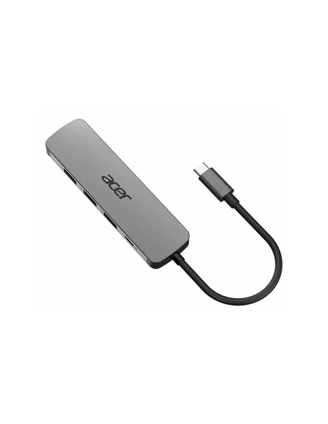 Características del Acer 5-in-1 Type-C DongleEl Acer 5-in-1 Type-C Dongle es una estación de conexión compacta que amplía la conectividad de tu portátil o dispositivo con puerto USB-C. Diseñado para profesionales, estudiantes y usuarios que requieren múltiples conexiones en un solo adaptador, combina ligereza, diseño elegante en color plata y un rendimiento fiable en cualquier entorno de trabajo o entretenimiento.Conectividad versátil en un solo dispositivoEste hub Acer te permite conectar periféricos y pantallas de forma rápida gracias a su amplia gama de interfaces. Con soporte para transferencias rápidas y salida de vídeo en 4K, se convierte en una solución ideal para mejorar la productividad y la experiencia multimedia.1 x HDMI (19 pines tipo A) con soporte hasta 4K a 60 Hz1 x USB-C con suministro de potencia (hasta 100 W)3 x USB 3.2 Gen 1 para periféricos de alta velocidadDiseño compacto y portátilCon un peso de solo 48 g y unas dimensiones de 10,5 cm de anchura y 3 cm de profundidad, este adaptador es fácil de llevar en cualquier bolso o mochila. Su acabado en color plata ofrece un estilo minimalista que combina con todo tipo de equipos portátiles.Diseño ligero y eleganteCable USB-C integrado para mayor comodidadFácil de transportar para uso diarioRendimiento y compatibilidad garantizadosEl Acer 5-in-1 Type-C Dongle ofrece entrega de energía de hasta 100 W, permitiendo cargar tu portátil mientras utilizas las demás conexiones. Además, su compatibilidad con Windows, MacOS y Chrome OS asegura un funcionamiento sin complicaciones en distintos entornos.Entrega de potencia de hasta 100 W (Power Delivery)Resolución máxima de vídeo: 4K a 60 HzCompatible con Microsoft Windows, Apple MacOS y Google Chrome OSOtras especificacionesTipo de producto: Estación de conexiónCable incluido: 1 x cable USB-C integrado