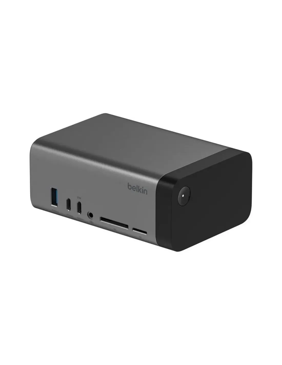 Características del Docking USB-C Belkin 150W INC020KQSGYEl dock Belkin Connect USB-C 150W está diseñado para quienes necesitan concentrar datos, vídeo, audio y red en un único dispositivo compacto. Con sus 11 puertos, soporte para múltiples pantallas y carga rápida de hasta 96 W, es una solución ideal tanto para profesionales en oficina como para quienes trabajan en remoto con portátiles o ultrabooks.Conectividad completa en un solo hubEste docking ofrece una amplia variedad de conexiones para que no falte nada en tu espacio de trabajo. Además de su interfaz principal USB-C, integra salidas de vídeo, puertos de datos de última generación y lector de tarjetas.11 puertos disponibles en total2 x HDMI con resolución hasta 4K (3840 x 2160 píxeles)3 x USB-C (Gen 2) y 1 x USB-C (Gen 1)1 x USB-A (Gen 2) de alta velocidadRanuras para tarjetas SD y MicroSDPuerto RJ-45 Gigabit EthernetConector de audio 3,5 mmAlto rendimiento para tu productividadEl dock está preparado para gestionar varias pantallas y transferir datos a gran velocidad. Además, es compatible con formatos de vídeo de alta definición, asegurando fluidez y nitidez en tu trabajo gráfico o multimedia.Velocidad de transferencia de datos: hasta 10 Gbit/sSoporta hasta 3 pantallas simultáneasCompatibilidad con resoluciones 4K y 8K (7680 x 4320)Frecuencia de actualización de hasta 120 HzModo DisplayPort Alternate a través de USB-CCarga potente y seguraGracias a la tecnología USB Power Delivery de hasta 96 W, este docking no solo conecta tus dispositivos, también los mantiene cargados. Además, incorpora protección contra sobreintensidades para trabajar con seguridad.Entrega de energía de hasta 96 WCapacidad de carga de batería integradaFuente de alimentación mediante corriente alternaDiseño compacto y funcionalEl dock Belkin Connect se adapta fácilmente a cualquier escritorio gracias a su formato compacto y acabado en color gris. Incluye un cable USB-C de 1 metro para mayor comodidad de conexión.Dimensiones: 54,2 x 91 x 132 mmCable incluido: USB-C a USB-C (1 m)Color: grisOtras especificacionesProtección contra sobreintensidades: síCombo de salida de auriculares/micrófono: síLector de tarjetas integrado con 2 ranurasPeso: no especificado