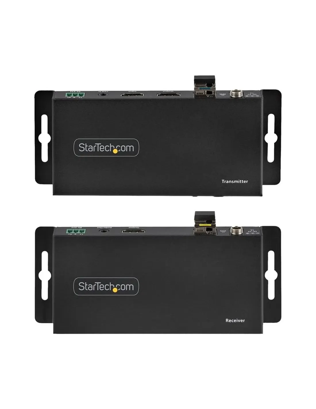 Características del StarTech.com 4K HDMI over Fiber Extender KitEl **StarTech.com 4K HDMI over Fiber Extender Kit** es una solución profesional para transmitir señal de vídeo HDMI 4K a largas distancias mediante fibra óptica. Diseñado para aplicaciones de alto rendimiento en entornos corporativos, educativos o de control, permite extender audio, vídeo, infrarrojos y señales RS-232 con una calidad de imagen impecable y baja latencia. Es ideal para **instalaciones A/V de gran escala** que requieren fiabilidad, resolución 4K60 y compatibilidad con HDR.Transmisión 4K60 sin pérdida hasta 1 kmEste extensor admite resoluciones de hasta **4096 x 2160 píxeles a 60 Hz** con soporte completo para **HDR 4:4:4**, garantizando imágenes nítidas y realistas incluso en pantallas de gran formato. La conexión se realiza mediante cable de fibra óptica LC, con soporte tanto para **modo monomodo (hasta 1 km)** como **multimodo (hasta 300 m)**.Resolución máxima: 4K UHD 60 Hz (4096 x 2160)Transmisión por fibra óptica LC monomodo o multimodoAlcance: hasta 1.000 m (monomodo) o 300 m (multimodo)Extensión integral: vídeo, audio, control e IRAdemás de vídeo HDMI, este kit permite extender señales de **audio multicanal (7.1)** con compatibilidad para **Dolby Atmos, DTS-HD Master Audio y Dolby TrueHD**, así como controlar dispositivos mediante **RS-232** o **infrarrojos (IR)**. Esto lo convierte en una herramienta completa para instalaciones interactivas o controladas a distancia.Compatibilidad con HDCP 2.2, HDR y DVI 1.0Transmisión de señales RS-232 y control por infrarrojosSoporte para audio envolvente y formatos avanzadosDiseño compacto y accesorios incluidosEl kit incluye todos los elementos necesarios para una instalación inmediata: **emisores y receptores IR, conectores RS-232, fuente de alimentación y cable de fibra óptica**. Su diseño compacto y ligero facilita el montaje en espacios reducidos.Dimensiones: 13,4 x 6,8 x 1,8 cm por unidadPeso total: 600 gIncluye: cable de fibra óptica, 2 emisores IR, 2 receptores IR, 2 conectores RS-232 y 2 transformadoresAlta fiabilidad en entornos exigentesEste extensor está preparado para operar en condiciones variables de temperatura y humedad, ofreciendo un rendimiento estable y duradero en usos profesionales.Rango de temperatura operativa: 0 °C a 40 °CHumedad operativa: 20% - 90% sin condensaciónConsumo energético mínimo: 0,1 W por unidadOtras especificacionesTipo de cableado: fibra ópticaInterfaces: HDMI (entrada/salida), LC monomodo/multimodo, IR, RS-232Normativas: HDCP 2.2, TMDS, DVI 1.0, WEEE, RoHSEmbalaje: 30 x 20 x 6 cm (1 kg)