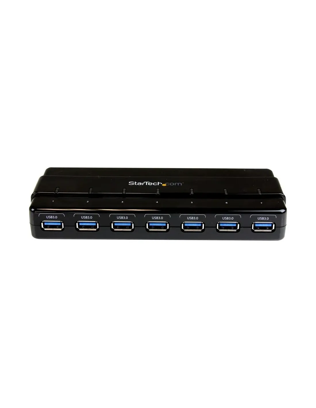 Características del StarTech.com Concentrador USB 3.0 de 7 PuertosEl **hub USB 3.0 de 7 puertos de StarTech.com** está diseñado para quienes necesitan ampliar de forma fiable la conectividad de su equipo con dispositivos USB de alto rendimiento. Ideal para entornos de trabajo, estaciones de sobremesa o tareas técnicas, este concentrador permite conectar hasta siete periféricos simultáneamente mediante tecnología **SuperSpeed USB 3.0**, con soporte para versiones anteriores USB 2.0 y 1.1. Su diseño de sobremesa con alimentación externa garantiza una conexión estable incluso con dispositivos de alto consumo energético.Conectividad USB 3.0 ultrarrápida y estableGracias a sus **7 puertos USB 3.0 Type-A**, este hub permite transferencias de datos rápidas y eficientes, ideales para discos duros externos, memorias USB, impresoras, escáneres y más. Incluye también un puerto de entrada USB 3.0 Type-B para la conexión con el equipo anfitrión.7 puertos USB 3.0 SuperSpeed (Type-A)1 puerto de conexión USB 3.0 Type-B al ordenadorCompatible con USB 1.1, 2.0 y 3.0Diseño funcional para sobremesa con alimentación dedicadaEl hub cuenta con una carcasa compacta y estable para uso sobre escritorio, e incluye un **transformador eléctrico externo** que garantiza una alimentación constante, incluso con todos los puertos en uso. Además, incorpora **indicadores LED** para visualizar el estado de alimentación de forma rápida.Formato de sobremesa robusto y estableAlimentación externa mediante adaptador incluidoIndicador LED de encendidoAmplia compatibilidad y uso inmediatoCompatible con sistemas operativos Windows, macOS y Linux, este hub es ideal para entornos mixtos o de oficina. Su instalación es **Plug and Play**, sin necesidad de drivers ni configuraciones complejas.Compatible con Windows XP, Vista, 8, Server 2003/2008Compatible con macOS X 10.x y Linux 2.6.xInstalación automática sin drivers (Plug and Play)Diseño técnico y dimensionesCon una construcción resistente y un tamaño equilibrado, este hub se adapta bien a escritorios sin ocupar espacio innecesario. Su amplio rango de temperatura operativa permite usarlo en condiciones variables de entorno.Dimensiones: 20,9 x 10,5 x 3,5 cmPeso: 140 gRango de temperatura de funcionamiento: -2 °C a 52 °COtras especificacionesCumplimiento de normativas: FCC, RoHSHumedad operativa: 5% - 95%Diseñado para modelos StarTech específicos (consultar compatibilidad completa)