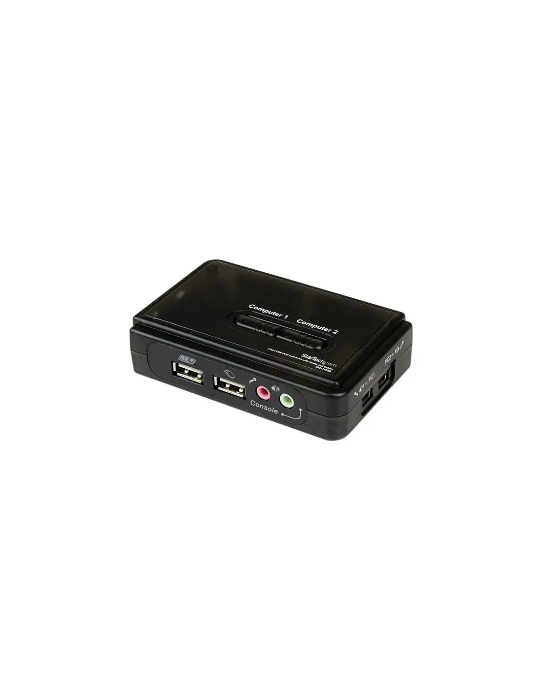 -GENERALConmutador KVM de 2 puertos todo incluido de StarTech.com. Permite controlar dos ordenadores desde un único conjunto de teclado, ratón y monitor. Admite audio y vídeo mediante conexión VGA. Incluye todos los cables necesarios para una instalación rápida y sencilla.-CONECTIVIDADPuertos disponibles: 2x USB-A hembra, 2x mini USB-B hembra y 1x HD15 macho (VGA). Conexión USB para teclado y ratón.-FUNCIONESConmutador KVM con soporte para audio y vídeo. Permite conmutación entre 2 equipos. Compatible con un único usuario local.